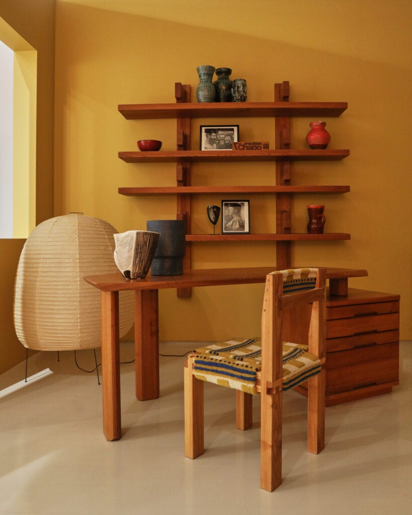 Now, Magen H Gallery in New York has recreated Chapo’s legendary gallery in a special exhibition, entitled 14 Boulevard de l’Hôpital, presenting the typical furnishings exhibited at the gallery – furniture by Pierre Chapo and Charlotte Perriand, lightings by Isamu Noguchi and Serge Mouille, and ceramics by the potters of the village of La Borne. It was envisioned by interior designer Ryan Lawson.