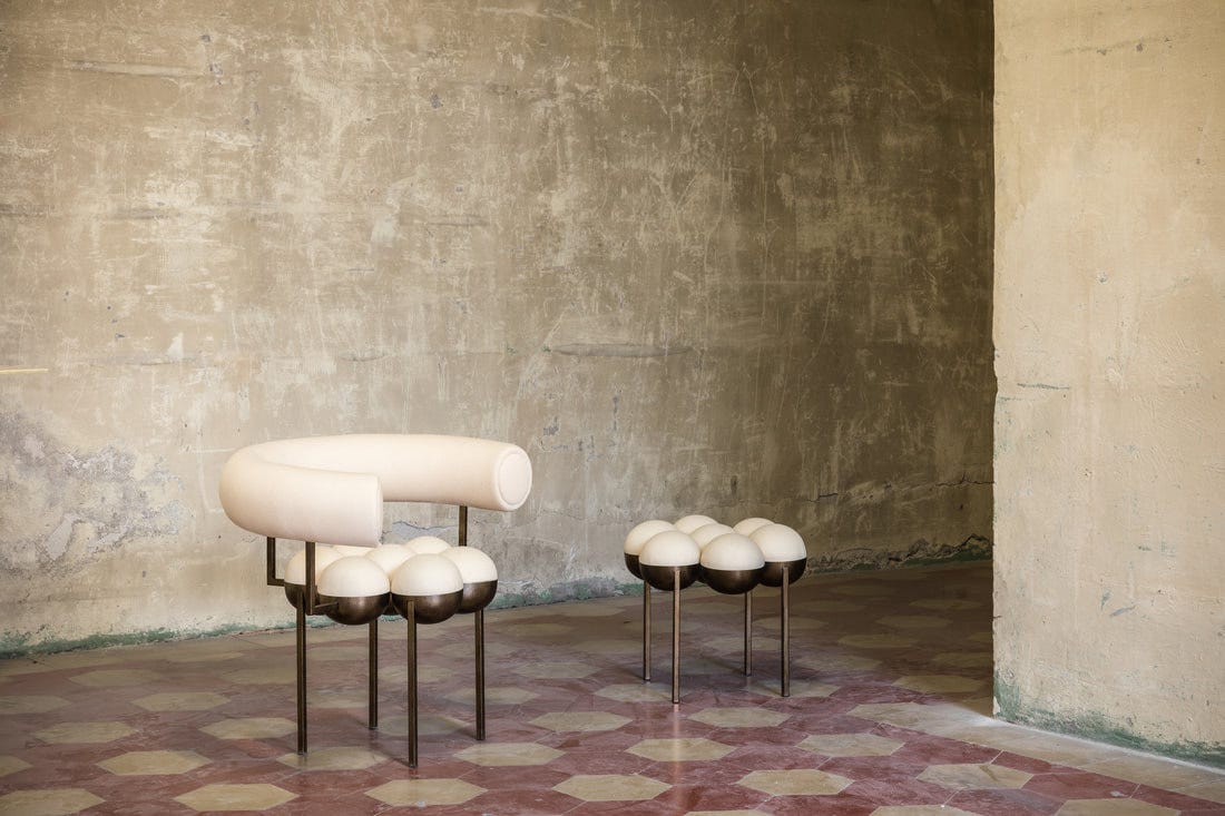 Lara Bohinc, the London-based designer created an entire collection, entitled Planetaria, inspired by this anniversary. Each piece refers to the space and planets, named ‘Apollo,’ and ‘Saturn.’ She told me that in creating the forms, she was specifically inspired by the ‘moon’s shape and outward trajectories, spheres, curves and arches.’ She has utilized her favorite form, the sphere, reflecting the timeless and eternal quality of the moon. To Bohinc, this seminal event ‘offered unprecedented freedom in imagining what the future could bring, technologically as well as visually,’ and thus deserves a special recognition.