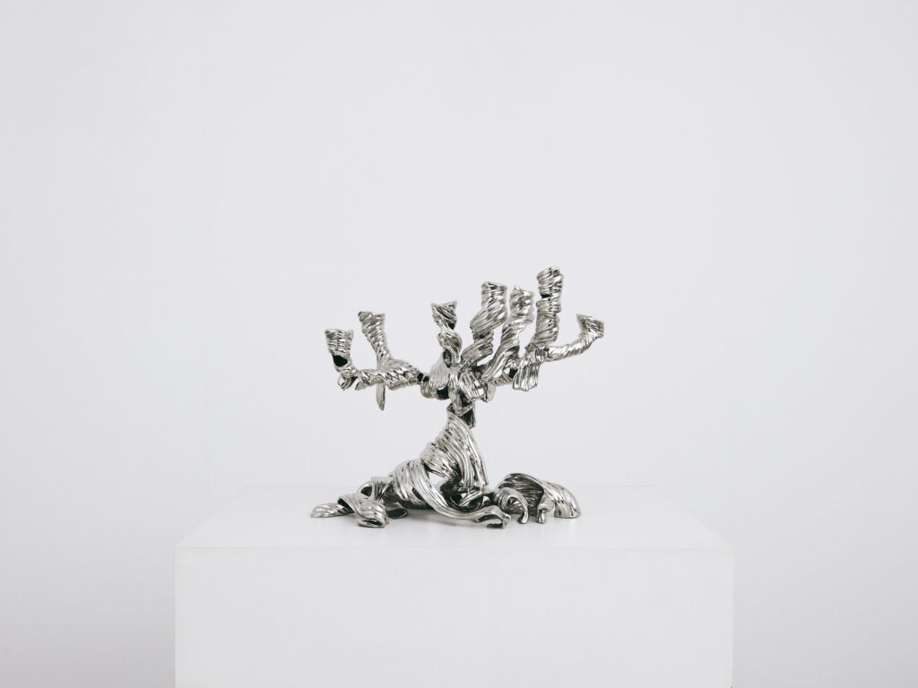 SEBASTIAN BRAJKOVIC Candelabra ‘Dancing Queen’ 2022 Stainless steel H32.5 x L23 x D23 cm / H12.8 x L9.1 x D9.1 in David Gill Gallery