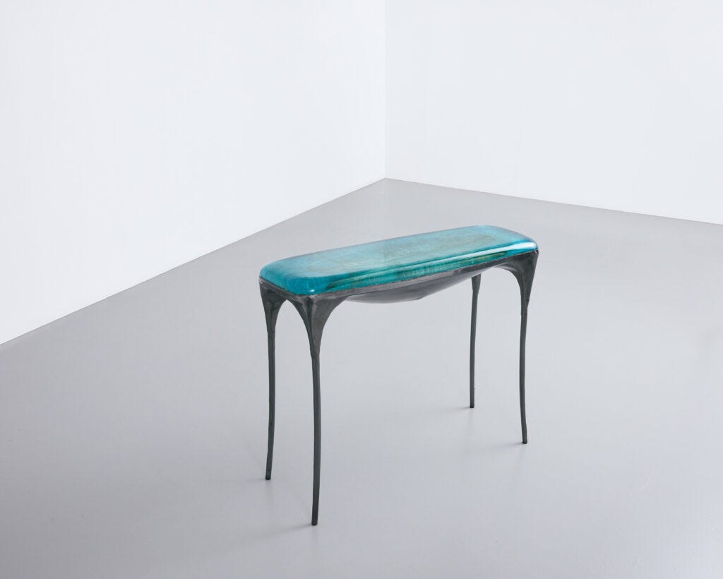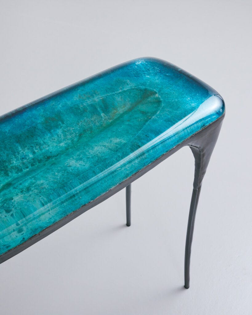 VALENTIN LOELLMANN Console 2022 Patinated stainless steel and copper, epoxy resin H81 x L101 x D34 cm / H31.9 x L39.8 x D13.4 in