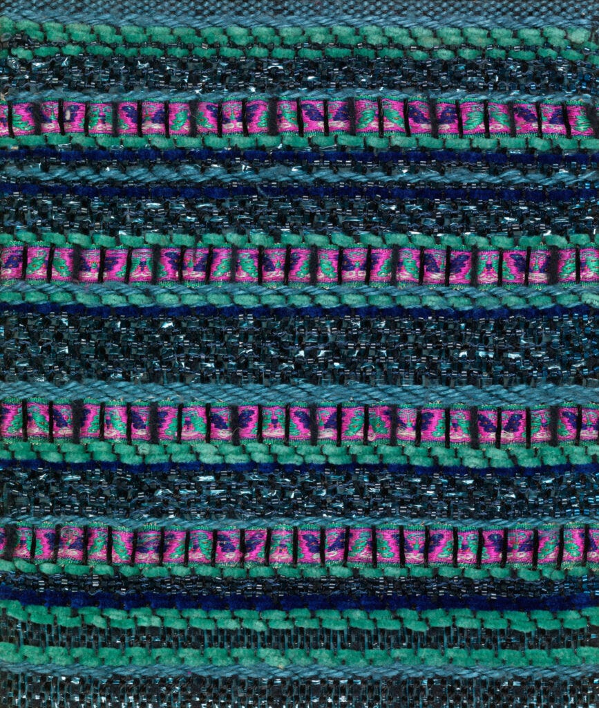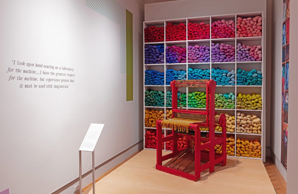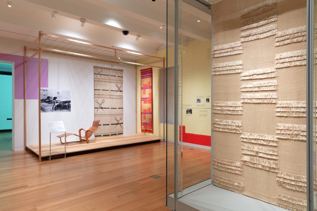 There is a great deal to discover in this show. I was fascinated to learn that Liebes was commissioned with a wall piece for Elsa Schiaparelli’s showcase at the 1937 Paris Exposition. She was also selected as the artistic director of the 1939 Golden Gate Exposition, to which she invited Marcel Breuer to contribute a set of his plywood seatings. In addition to the famed handwoven fabrics that she created in her studio, she also created affordable fabrics for companies such as DuPont Textile Fibers; it is no wonder that her ultra photogenic studio was the most photographed of that era. She also created the upholstery fabric for the turquoise seats of the 1957 Chrysler Plymouth Fury. It is my hope that this show will have many visitors from outside the world of design because it is a testimony to the power textile has to make a difference.