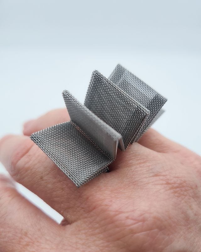 I am fascinated by many forms of design created by architects: furniture, jewelry, ceramics, fashion. The journey from buildings to objects tends to produce intriguing and surprising results. I hope more architects create jewelry and apply the skills of precision and forms into the story of wearable art, translating urban design and built fabric into small, personal scales jewels.