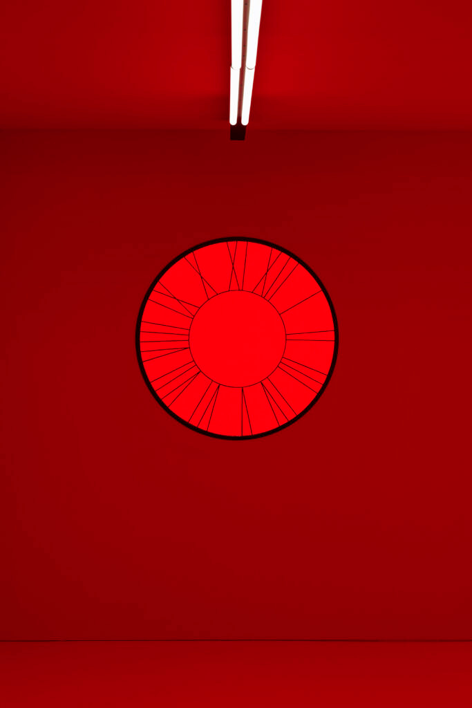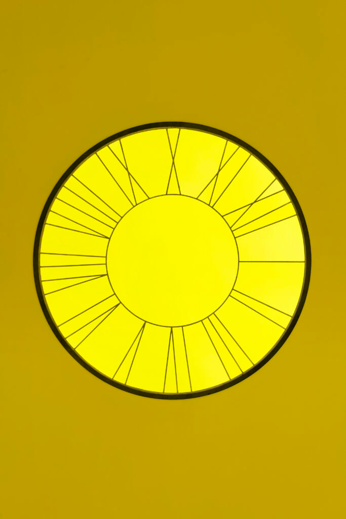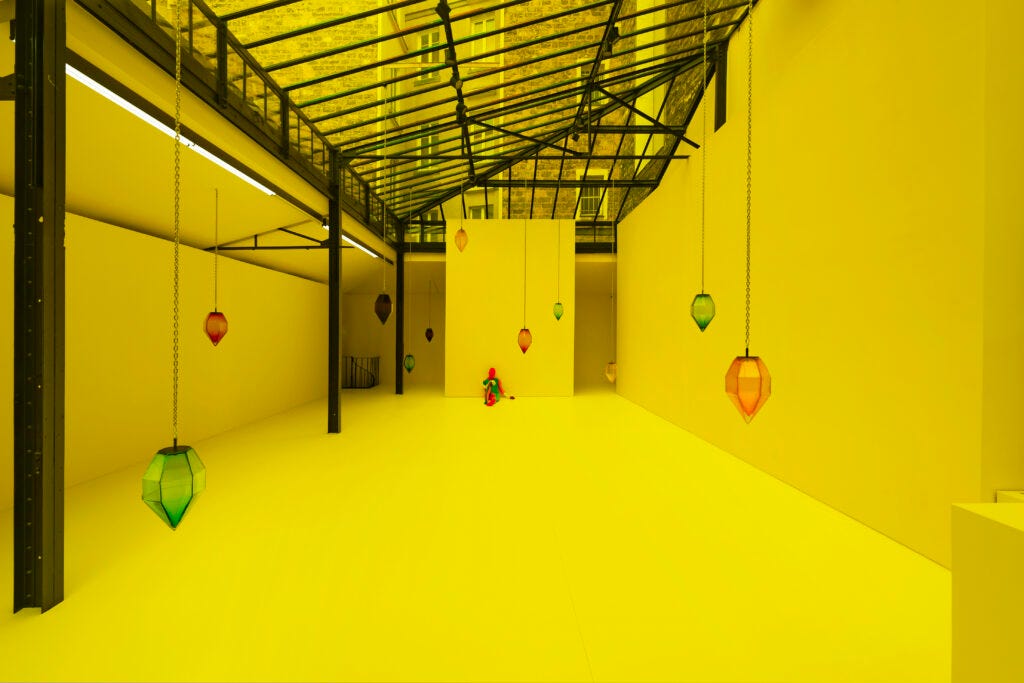 I admit, I was not used to thinking of spaces in bold reds, blues, and yellows aside from the work of De Stijl—the early modernist and part of the Dutch movement—which advocated for abstraction and universality by being reduced down to the essentials of forms and colors. The current exhibition is by Swiss contemporary artist Ugo Rondinone in collaboration with emerging artist Tarek Lakhrissi, both in the mentorship program by Reiffers Art Initiatives, brought me into spaces in those primary colors. The two transformed and energized the entirety of the art foundation in Paris’s 17th arrondissement into a magical experience in color, a building recently redesigned by Brussels-based architect Olivier Dwek.