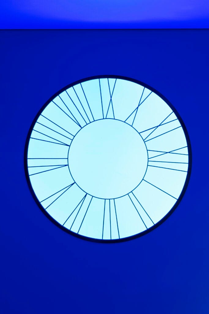 While I am not personally a color person, the work of Rondinone has for years captured my attention and love for the way in which it utilizes color as an agent of emotions, meditation, and melancholy. In this installation called ‘Who is afraid of Red, Blue, and Yellow?‘ ‘ (me!), the two have transformed the three-story building in primary colors with the intention of invoking an emotional response. Each floor was dedicated to one of the three primary colors while also presenting their artwork, including Ugo Rondinone’s Clocks and Tarek Lakhrissi’s bed-sculpture Sick Sad World. The color affects the mood of the gallery space, and promotes us to ask: How do I feel? How does each color affect my own mood?