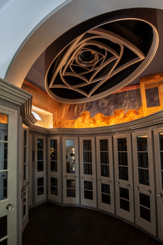 Over the last few decades, the taste for postmodernism has mostly vanished from the world, and the movement has remained more of a statement to its zeitgeist rather than a style that architects today use. Why has it become outdated? Because we are living in a moment that embraces sustainability and authenticity, praises honesty of materials, revives modernism, and the quest for preservation true to the building’s origins and historical contexts. The Postmodernists of Jencks’ generation sought to propose a progressive alternative to modernism and to its strict rules. It embraced historical sources, decoration, ornaments, textures, and sought to connect to pop culture and the taste of the public while claiming that modernism was too elitist and disconnected with reality. In the Cosmic House the key principles of the movement are fully expressed, championing complexity and contradictions over the clarity and simplicity of modernism, and it is filled with kitsch decorations and quotations from the history of design and architecture. The contradiction between the original Georgian house and the renovation created by Jencks—including the back façade—stands at the core of its program. “For my father,” Jencks’ daughter Lily said, “postmodernism was a way of freeing things up from the seriousness of modernism.”