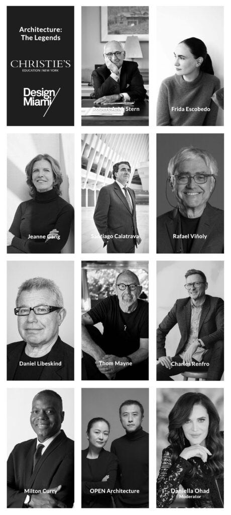You cannot fully understand contemporary culture nor design, without knowing the built fabric. Knowing contemporary architecture adds to our aesthetic value, to our taste and confidence, to our ability to enjoy what we see. Architecture: The Legends is a ten-session series, which I curate and host for Christie’s Education, opening on October 12th. I will host 10 of the world’s most important and intriguing architects, the legends who have established international profiles with their own signatures, designing some of the world’s most renowned and important projects. They will provide insight into the evolution of their work, careers, and the state of architecture today.