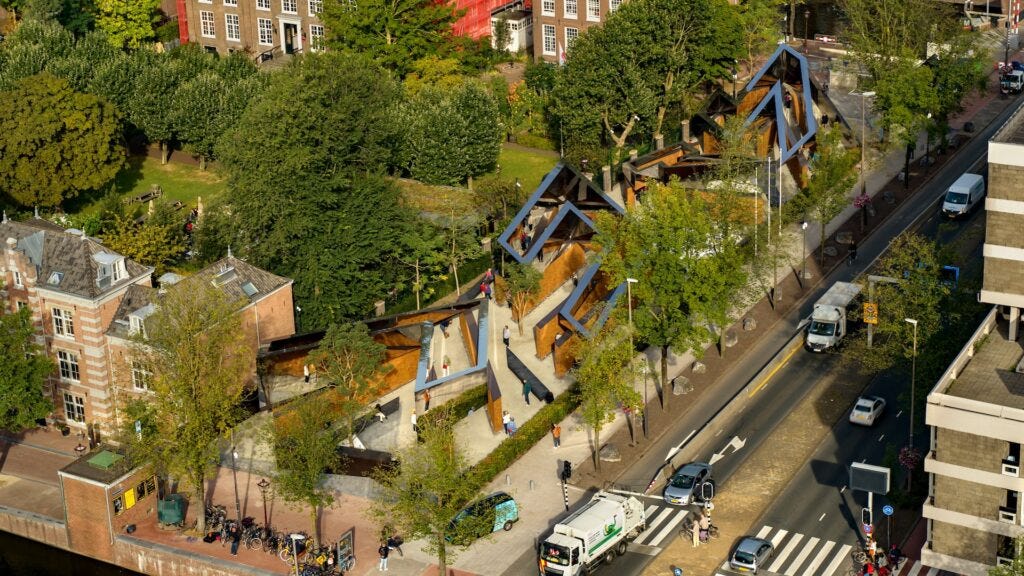 A similar sentiment is found in the lyrical opening lines of Libeskind’s 2004 memoir Breaking Ground: “Someone once asked Goethe what color he liked best. ‘I like rainbow,’ he said. That’s what I love about architecture. If it’s good, it is about every color in the spectrum of life; if it’s bad, the colors fade away entirely. From the ruins of Byzantium to the streets of New York, from the peaked roof of a Chinese pagoda to the spire of the Eiffel Tower, every building tells a story, or better yet, several stories.”