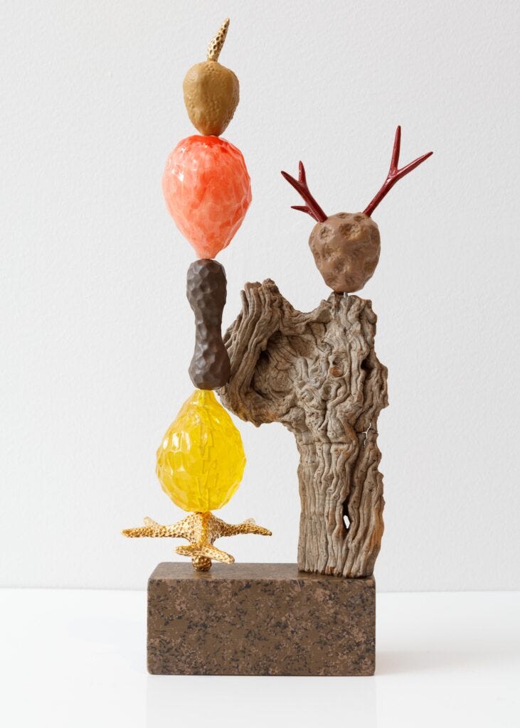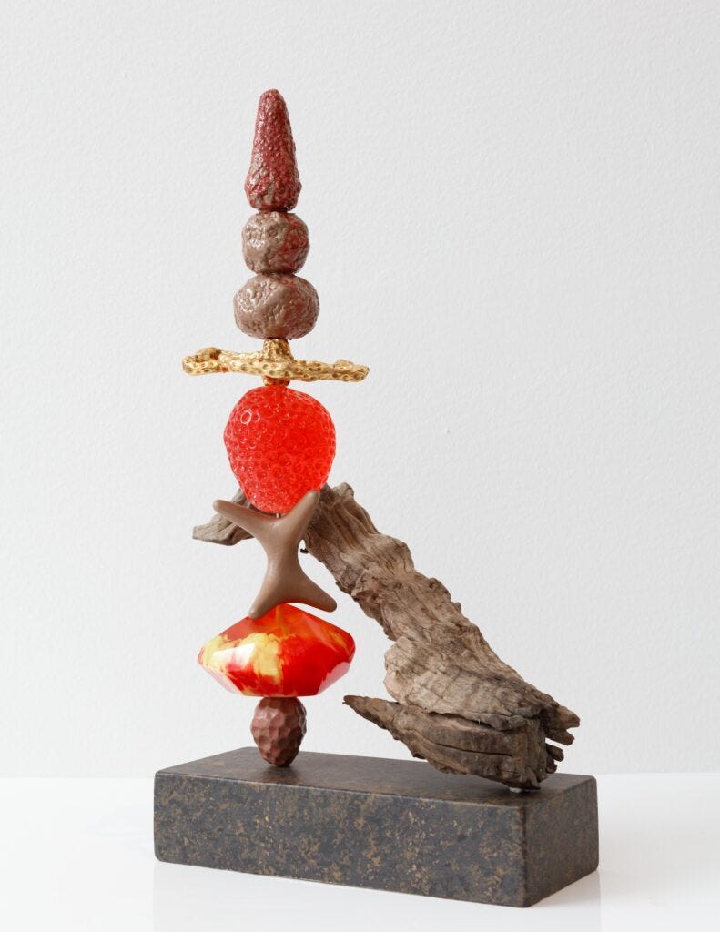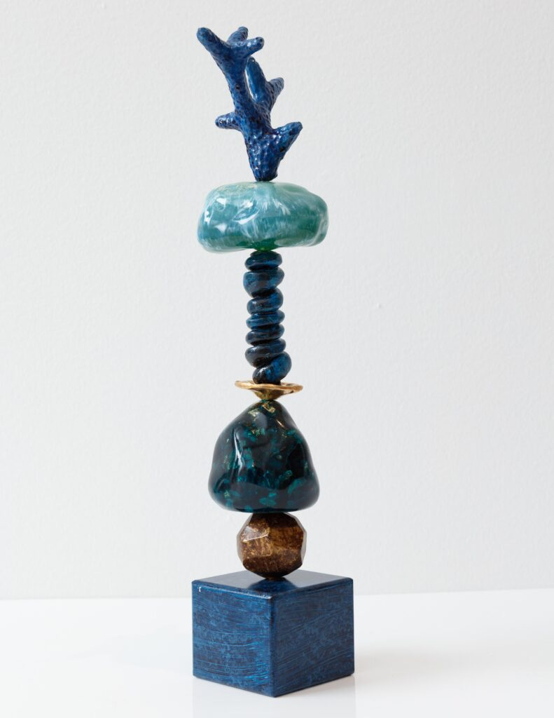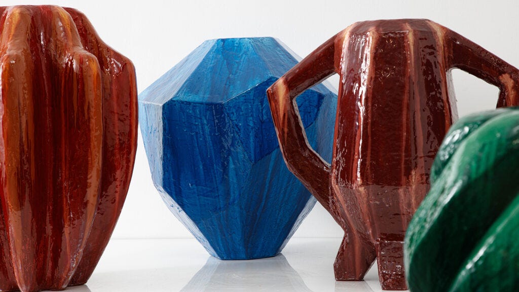 In his new solo show Ashley Hicks: Manhattan Stones, which opened last week at R & Company, Hicks expresses his love for Manhattan, and as always, he is doing it his own way. The inspiration comes from old photographs dated during the golden age of Manhattan skyscrapers and found in museum collections; from historical ceramics; Georgian furniture; and from Greek sculptures which he had seen at the collection of the Met. He created the entire collection with his own hands, carving blocks of foam and shaping them into gemstones or animal legs, then covering them with resin and finally with his brilliant colors. Resin is his way to give a contemporary expression to his work. When you look at the brilliant surfaces, you can easily mistake these forms as being clay covered with high gloss glaze. but when you touch them, you immidiately recognize the lightness. His pieces look just like jewels, like the gemstones which inspire him to forge his language.