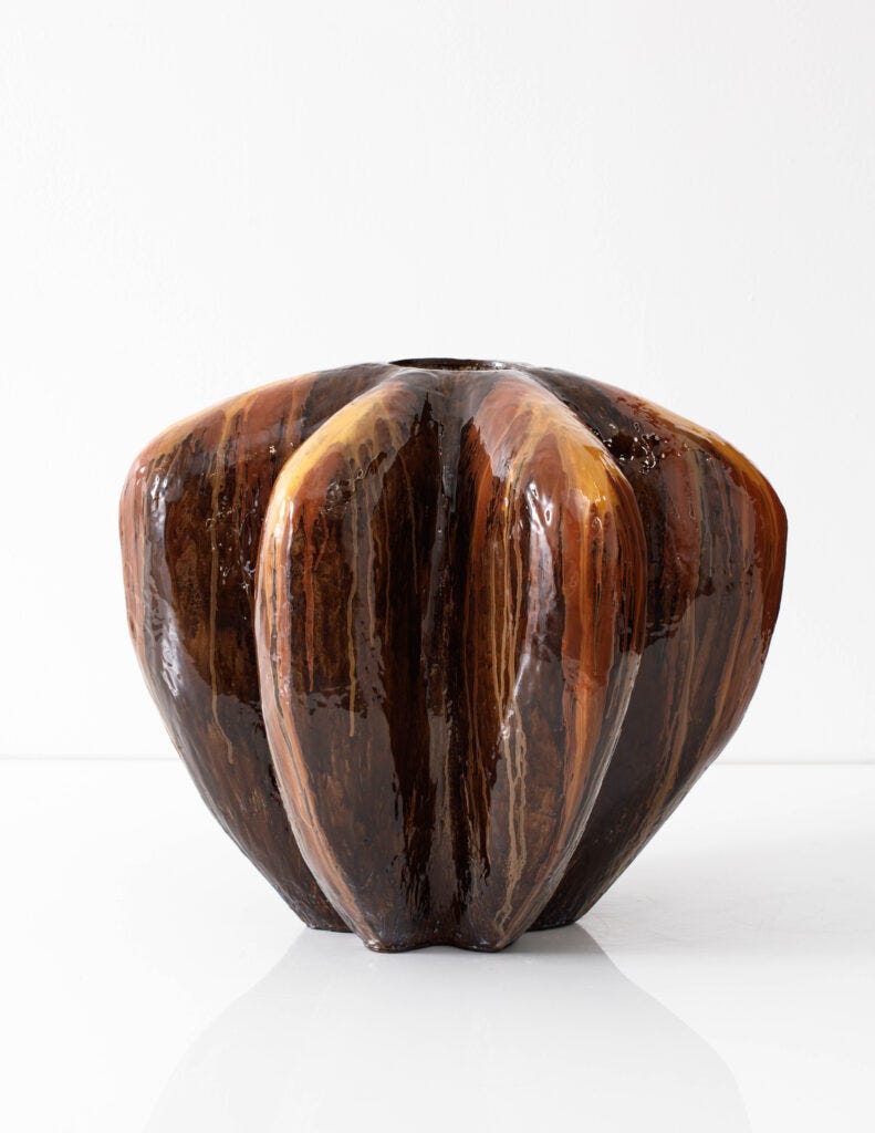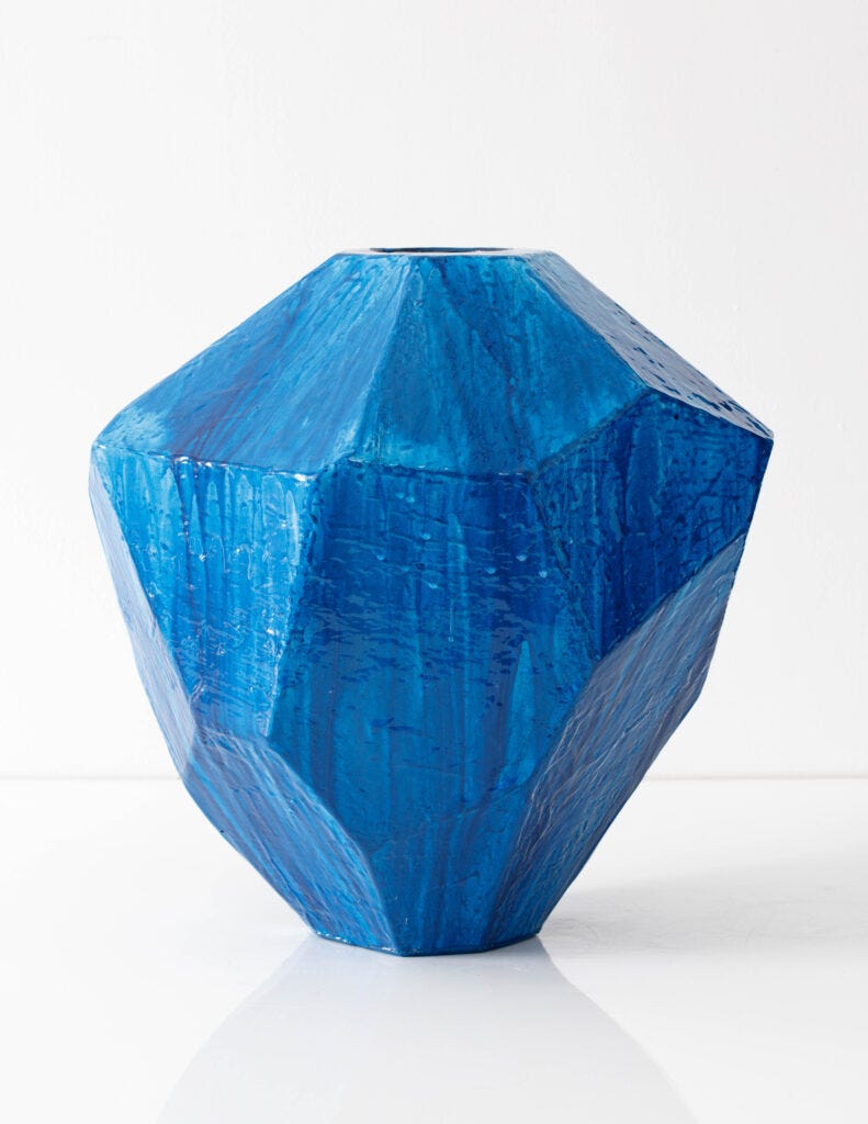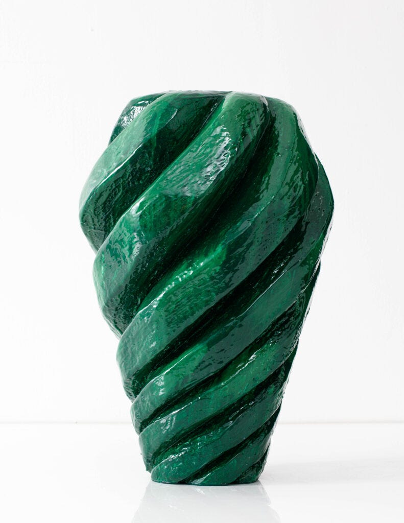 He is equally daring when it comes to the use of color and bold forms, unafraid to call his work ‘decorative.’ Hicks’ colors are bright, happy, and impactful. “I could not live without colors,” he told me, referring to the deep and layered colors and textures in his work, enriching his objects with a quality that has the power to transform spaces. He works across multiple disciplines such as objects, interiors, and textiles, and he attains them all with his own signature. Working solo at his studio in Oxfordshire—which he created at his country house—Hicks could not be happier spending his days at the studiom, when crafting objects in his own hands, using resin and paint, his signature materials.