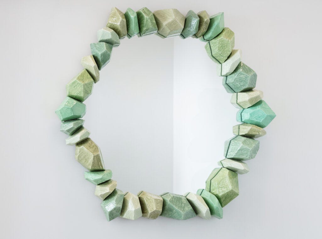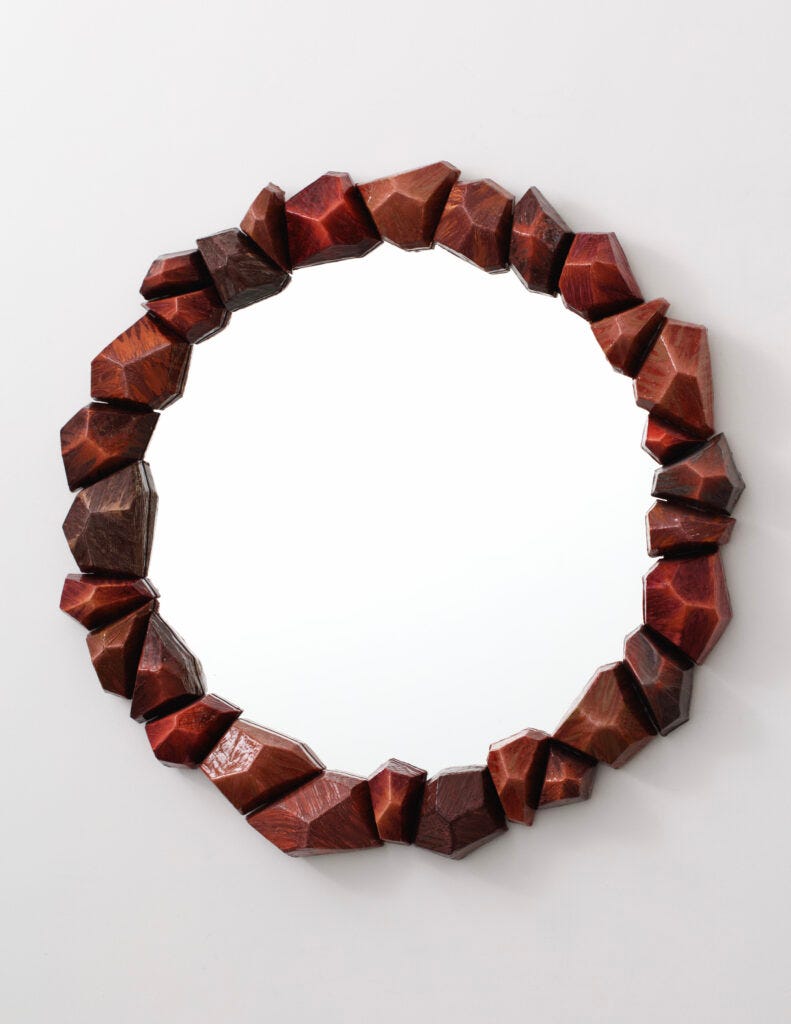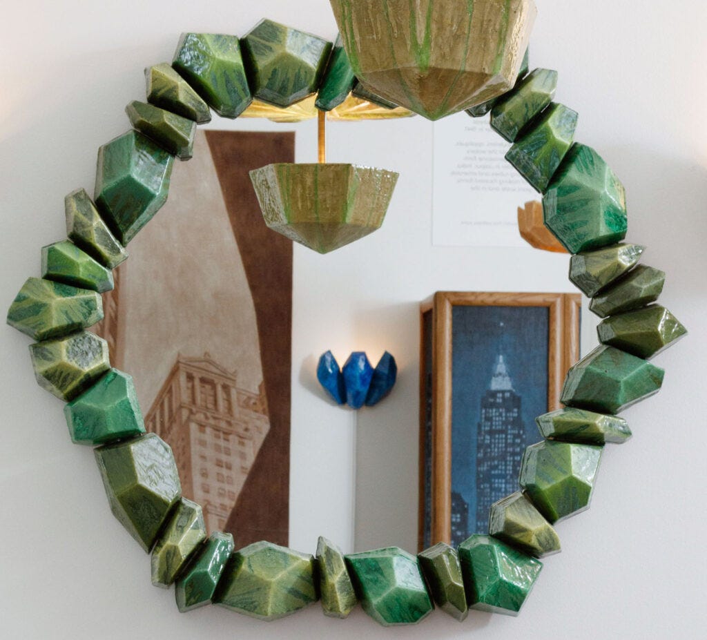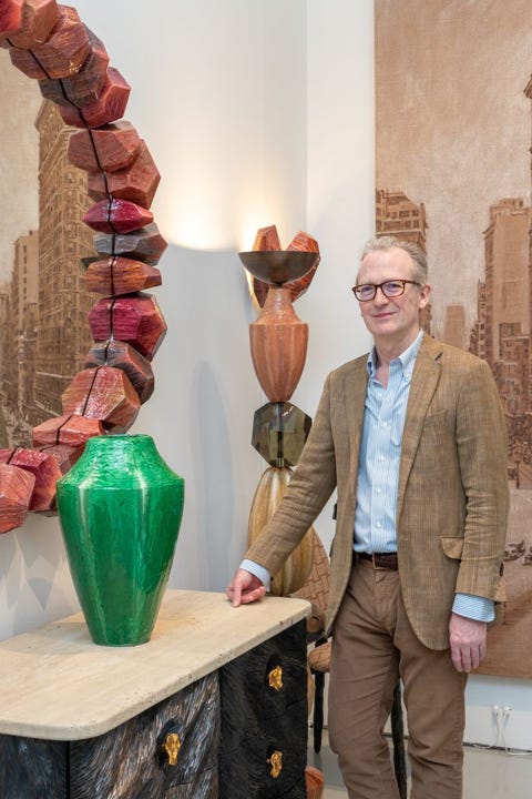 Hicks’ career has been multifaceted, including publishing books about his father, the legendary interior decorator David Hicks, and on the magnificent historical interiors of Buckingham Palace, which he has mastered; creating collections of wallpaper, carpets, and fabrics. However, it was in 2012 that he began to create one-off furniture and objects by hand, and by today, he has reached his mature language and has mastered his techniques. His mirror frames are just magical, his chandeliers, inspired by gemstones look surreal, and his totem sculptures made in resin, clay, glass, and wood, are simply divine. Not to mention that Hicks himself is delightful, modest, somewhat shy, and oh-so brilliant.