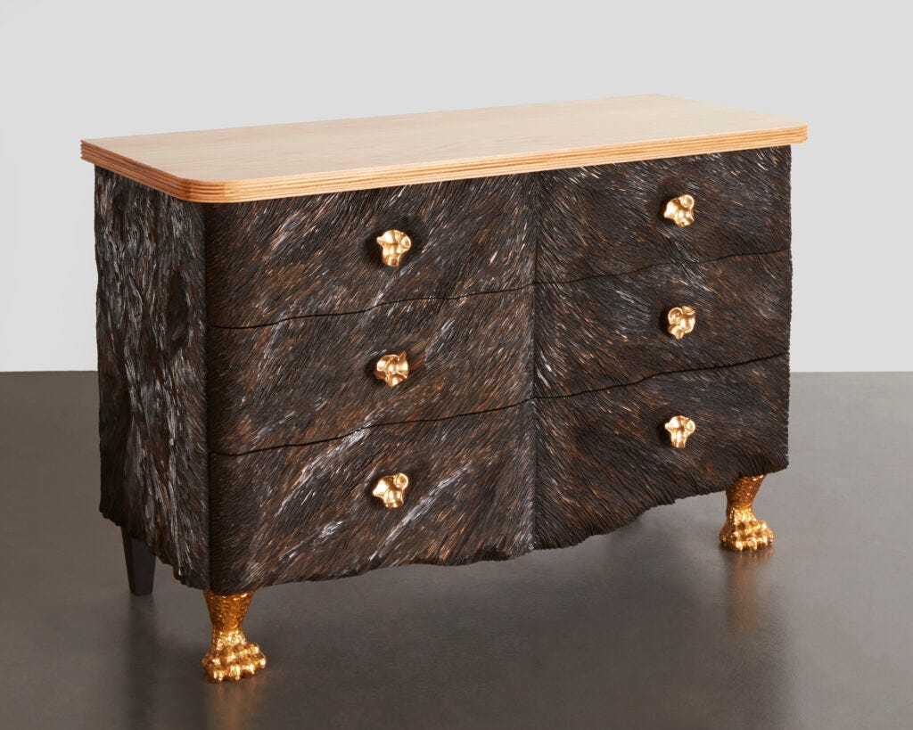 In the landscape of collectible furniture, British architect/designer Ashley Hicks (b. 1963) stands out. He brings a unique and personal typology, informed by his sensitive and artistic passion for the history of decorative arts, from which he has forged his own vision when creating what is known as “antiques of the 21st century.” Although Hicks is a member of the contemporary design movement and his work carries some of its characteristics (handcraftsmanship, personal expression, narratives, and sculptural forms), he does not belong to any group, mode, or style. His work is detached from contemporary design trends, so I like to consider it “slow design.”
