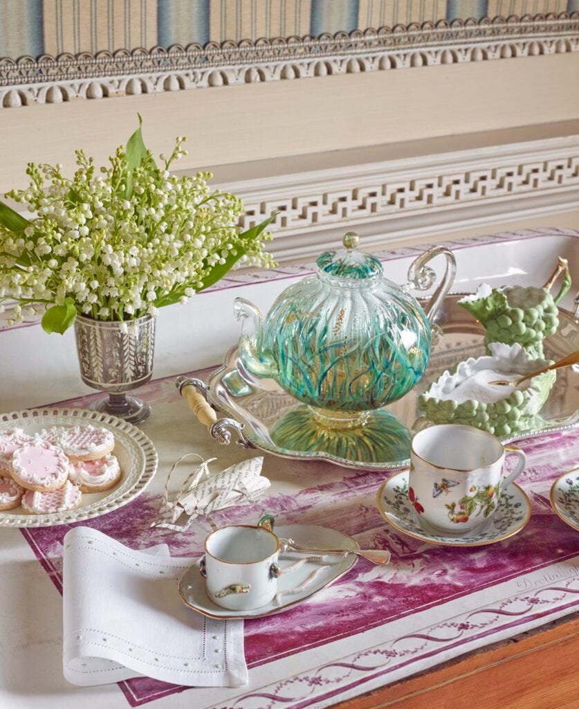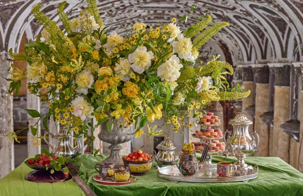 The formula of the book is simple: mixing high and low, historical and current, and integrating the table within home interiors. They paired historical table wares—mostly elaborate 18th century style pieces that they took on loan from museums, private collections, and friends, and from their own homes, with contemporary pieces made bespoke for the production of this book. They commissioned artists and craftspeople with the mission to reinterpret those vintage pieces in their own way, and to propose a new anf fresh creative way to created something similar. Schulak and Stark then mixed and matched, integrated the old with the new, and added beautiful food and magnificent flowers, creating the most stunning tables. The book illustrates the entire process, including images of the artisans in their studios preparing the pieces.