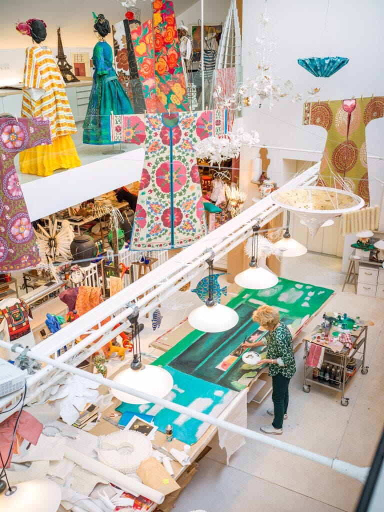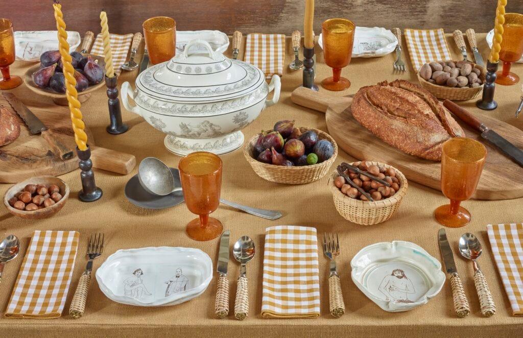 Roberto Lugo, the Philadelphia-based potter and social activist, created for this project colorful dinner plates in his graffiti style and decorated with his hip-hop signature portraits of young people of color. The way in which this so perfectly pairs with precious silver-gilt 18th century flatware and Saint-Louis crystal glassware is the magic of contemporary taste. It is beyond just aesthetic ‘eclecticism,’ it is about conversations of narratives, about the political content of design. The result is a mix of high and low, elegant and humble, and illuminates royal imagery with that of racial and social injustice in Lugo’s voice. We see how Tyler Hays founded the BDDW, the company of handcrafted homeware—created pieces in blue-and-white to integrate with the antique delftware in the same color scheme from the collection of the Musée des Arts décoratifs; and Belgian artist Isabelle de Borchgrave d’Alena’s colorful tablecloth, and hand-blocked wallpaper utilized as the backdrop for the Chinoiserie table. This reminds us that with the right touch, even the historical can be relevant, young, frersh, demonstrating that the value of craftsmanship is timeless.