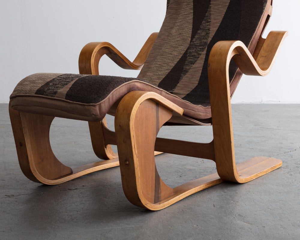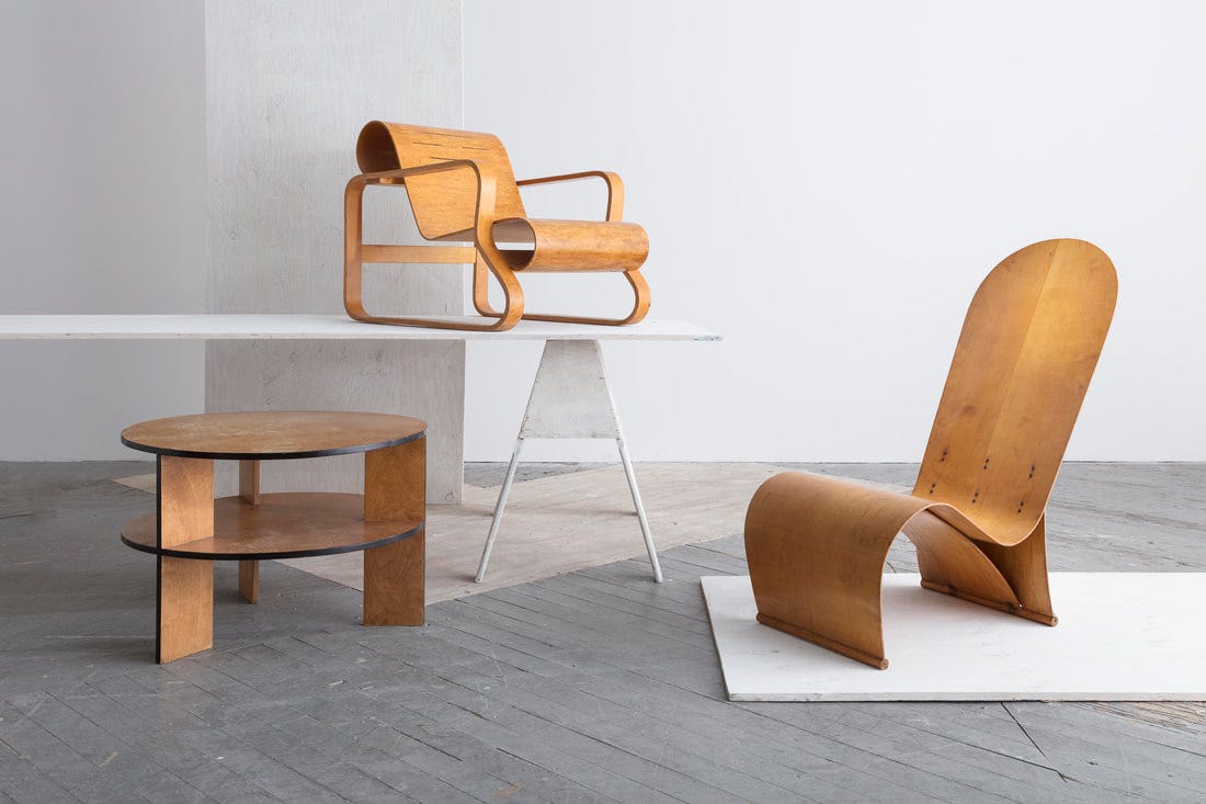 There was a certain allure attached to plywood furniture, the magical material created by gluing together layers and layers of cross-grained veneers. While the technology was first invented in the 18th century and extensively utilized during the Industrial Revolution of the 19th century, its heyday came with the birth of modern design. Plywood was not just the perfect material to create modern design in production, but had also come to signify the hope and trust in the power of industry to create a better world for the millions. It was popularized first in the 1930s in Finland and UK, and then in the US during the immediate years following WWII. Heavily promoted by MoMA, plywood was famously recognized in furniture by Ray and Charles Eames, created and sold in the US, but also exhibited across the globe. Now, a new exhibition ‘Bend it like Breuer: Modern Plywood of the 20th Century,’ curated by James Zemaitis, Director of Museum Relations at R & Company, comes to illuminate the role of plywood in the evolution of modern design, and its potential to achieve the forms loved by the modernists. While it was explored in depth last year at the V&A in a show by Christopher Wilk, Zemaitis’ exhibition comes to celebrate the Bauhaus centenary, and its title suggests a particular departure from the legacy of Marcel Breuer, who, after feeling Germany with the rise of the Nazis and temporarily settling in London, created a series of furniture for the British company Isokon. I cannot think of anyone to better explore this theme than Zemaitis, whose commitment to study and sell museum-quality masterpieces in plywood began during his tenure at Philips in 2001, when we first met. The beauty of this show, which features pieces made in Brazil, Japan, and Estonia, in addition to the more known furniture made in Finland and the US, is that they are all offered for sale. “I cannot think of a better way to survey the themes of modernism,” he told me, “than to start collecting with Aalto’s Paimio Chair, the Venesta stool, Breuer’s Long Chair, Eames’s LCW, and Greta Jalk’s famous one-piece chair in bent ply, and then add something non-Western and less well known such as a z-shaped plywood lounge chair by Jose Zanine Caldas, made in Sao Paulo, he told me. I wish Charlotte Perriand’s Ombre Chair, which, to me epitomizes the potential of plywood to achieve the desired and ambitious forms and principles associated with modern design. The show opens until March 9th.