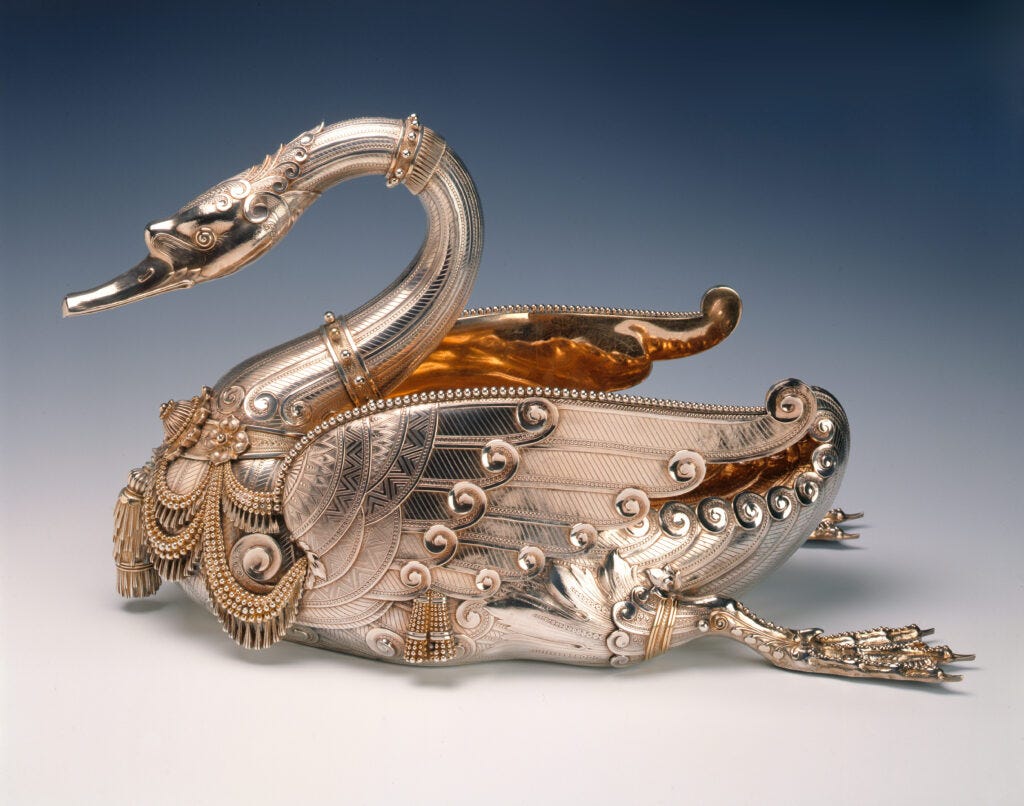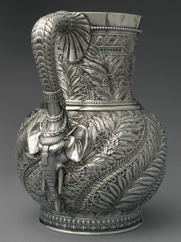 What all could you ask for when entering a museum show? Whatever your answer, the new and excellent exhibition Collecting Inspiration: Edward C. Moore at Tiffany & Co at the Met gives it all. While everyone knows the American luxury house Tiffany & Co., founded in 1937 by Charles Lewis Tiffany, also known as the father of glass artist Louis Comfort Tiffany, only a few know that it was Edward C. Moore, the brilliant silversmith and visionary director, was the one who turned the small jewelry shop into a brand. He was responsible for the creation of the most avant-garde silver of its day, which was highly sought after by the powerful American families of the Gilded Age (the period spanning from the late 1870s through the 1890s that was marked by an enormous economic expansion), who perceived Tiffany’s silver as the ultimate sign of taste and power. Moore was the creative force behind the magnificent and forward-looking silver produced at Tiffany & Co. during the second half of the nineteenth century which ushered in the company’s golden age.