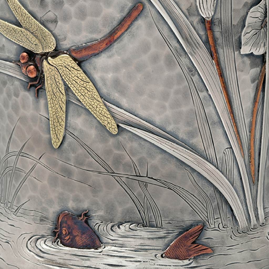 The artistically rich decade of the 1870s known as the Aesthetic Movement, which flourished in Britain and the US, came to inform Moore’s approach and Tiffany’s silver during those years. Artists, artisans, and thinkers began turning their backs on industrial production, instead seeking to connect to handcraftsmanship and the exotic cultures gradually bringing their presence to the West through the world’s fairs. Moore was the man of his age and sought inspiration from those cultures (Islam, Chinese, Japanese) to help make his collection of artifacts a source of inspiration and creativity.