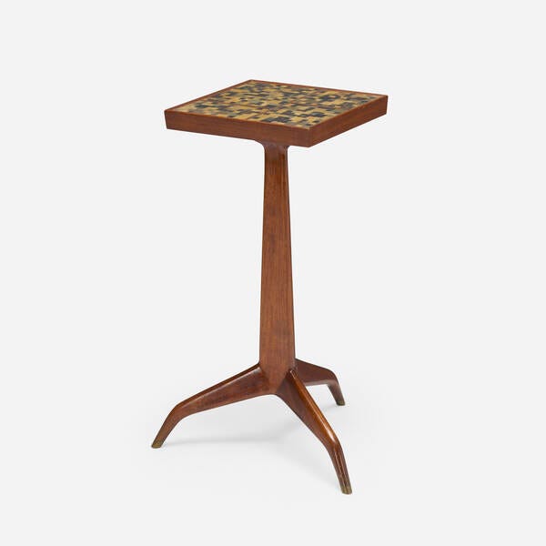 The 55-year-old Wormley was one of the six furniture designers featured in what has become an iconic photograph published in the July 1961 issue of Playboy Magazine, in an article titled ‘Designs for Living.’ There, he was seated on his Armchair model 5480 produced by Dumbar with which he forged a decades-long relationship. During this time, he designed over 20 pieces of furniture a year, and both he and the company were very successful. Although Wormley was a modernist, he sought to fuse modern ideas with traditional values and to imbue his furniture with handcraftsmanship. His tile-topped tables, which were inserted with clay tiles by Otto Natzler and glass tiles by Louis Comfort Tiffany were particularly striking, demonstrating his approach in merging craft with industry.