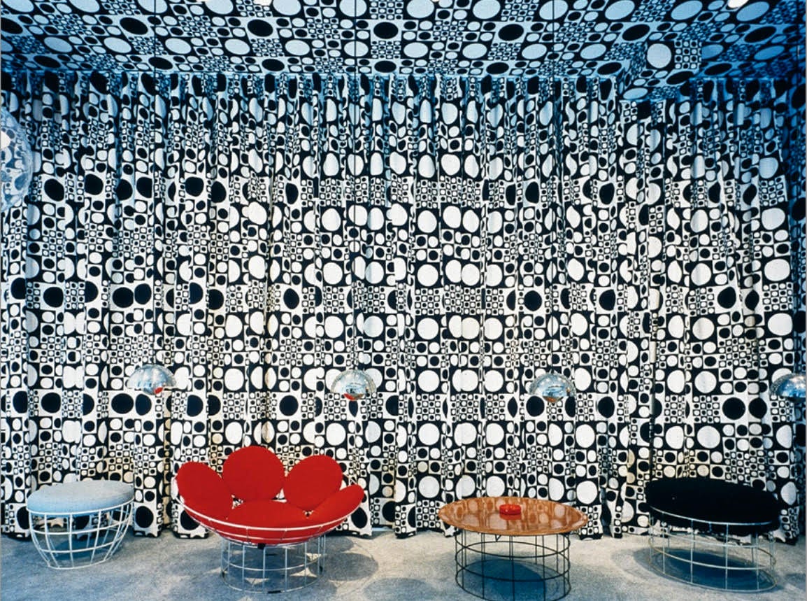 When Meyers and Snyderman, opened the first monographic exhibition dedicated to Verner Panton at their New York–based gallery, R & Company, in 2001—shortly after the Danish designer’s death—he was largely forgotten. His legacy was overlooked during the 1990s, and his postmodernist aesthetic fell out of favor as design tastes shifted towards a minimalist ethos, and was certainly not considered collectors’ material. The 60s were very different for Panton, the rockstar of design, who, with distorted, vibrant, surreal work, brilliantly applied the principles of Op Art and Pop Art to design interiors and products. He was to design what Yayoi Kusama and Claes Oldenburg were to art, what Mary Quant was to fashion, what Steve McQueen was to film—a rebellious dreamer who challenged design conventions, experimenting with immersive environments that were radical and psychedelic.