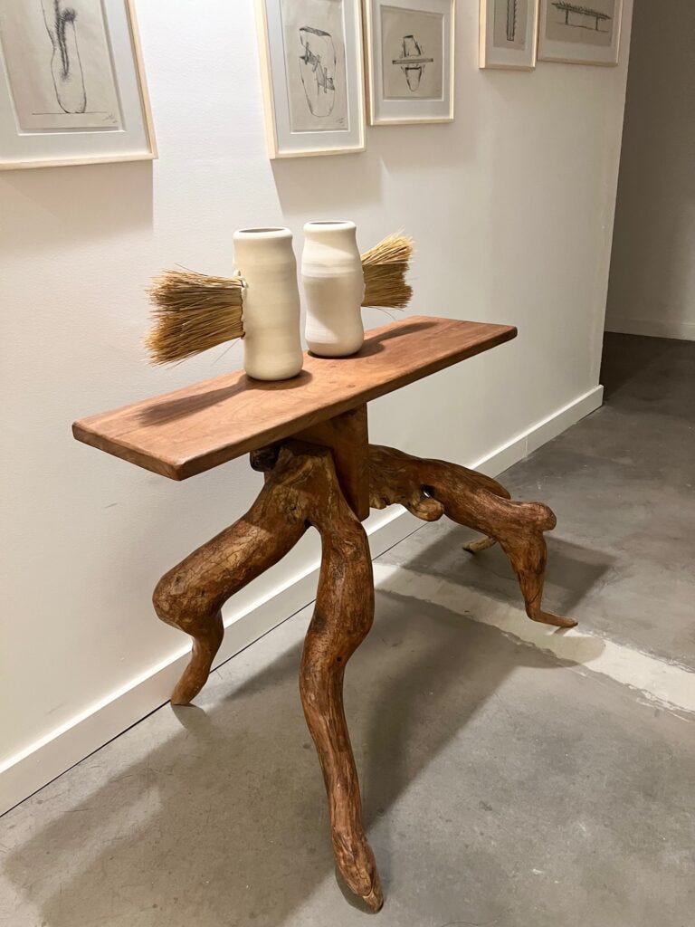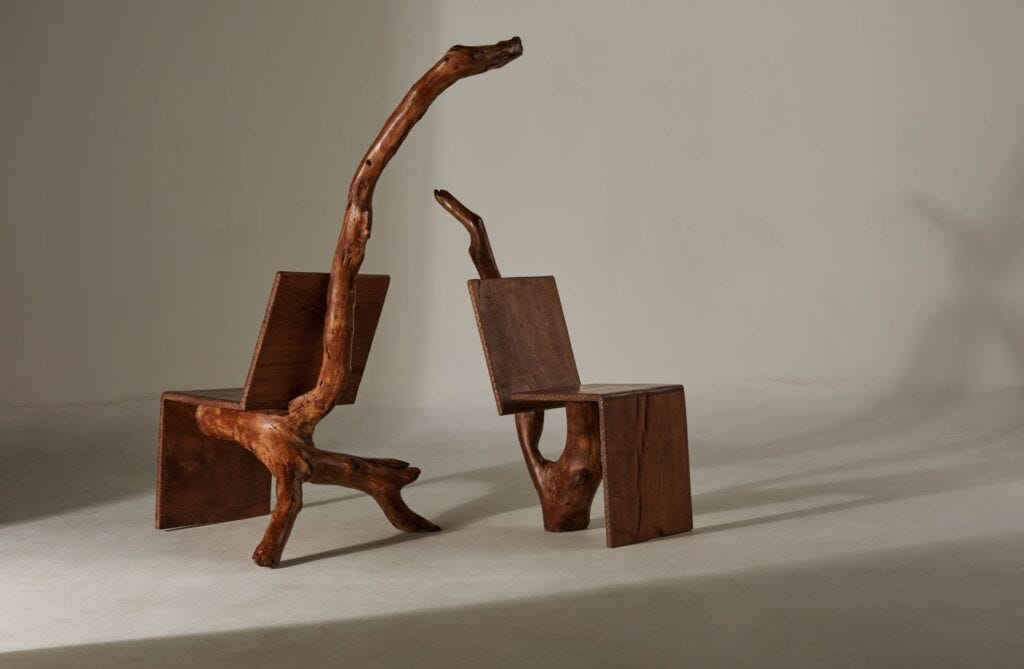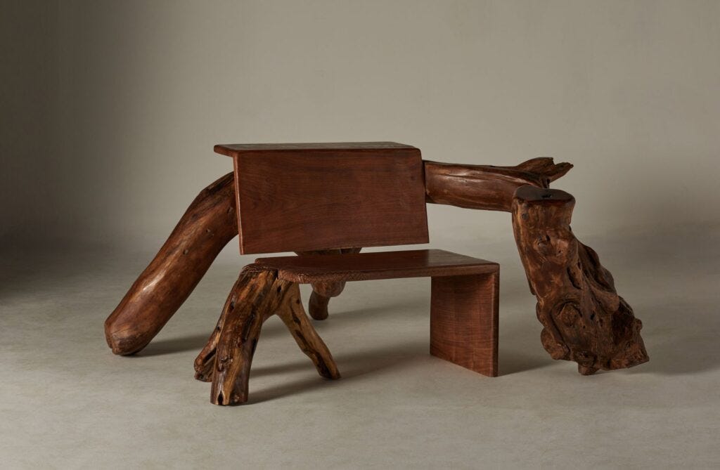 Mohaded is a world traveler, visiting a variety of cities and cultures, even living in Milan for 4 years. However, his most favorite expeditions are when he travels throughout Argentina during his research and search for the crafts. He particularly loves going to the northern province of Catamarca, where he was born and raised. He spends weeks near the forests which are his own playground, all the while working with local craftspeople. He must deal with difficult weather, long travel, and harsh conditions while he drives his truck identifying branches of fallen trees, working with local cabinetmakers who craft branches into expressive furniture, which has become his new passion, and shaped the most recent of his pieces.