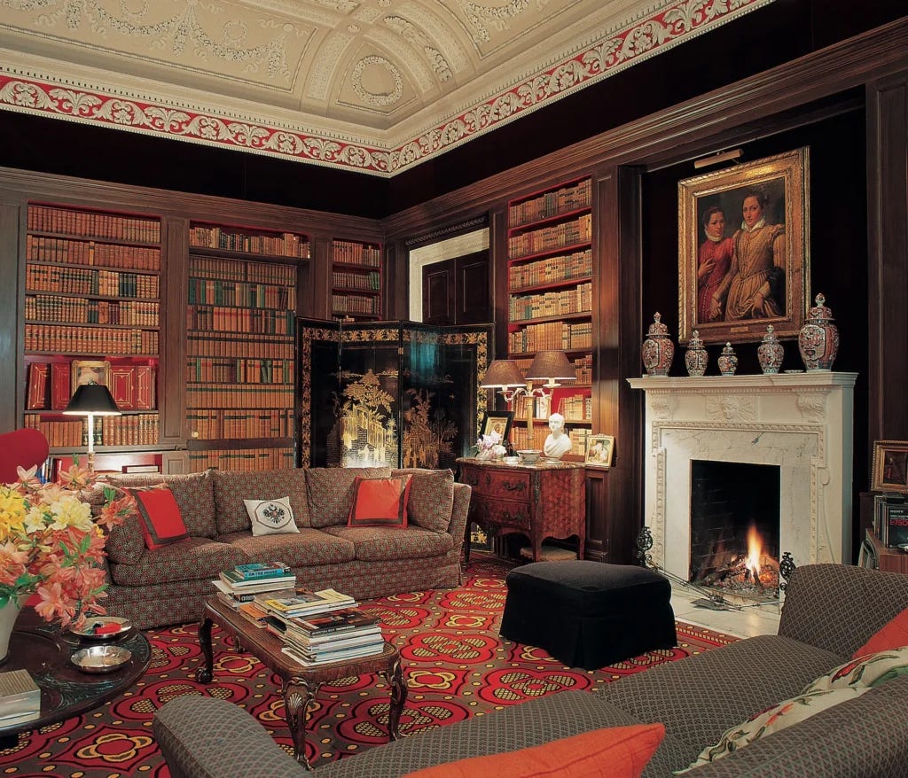 David had a great admiration for the US, especially the way American interior decorators were perceived as serious professionals. He also loved the modernist approach to interior design that suffused the US in the postwar era. At the same time, though, he was attracted to the material culture of India, where his father-in-law, 1st Earl Mountbatten of Burma, was the last Viceroy before the country won independence in 1947. In India’s rich handcraft and textile traditions, David found endless inspiration, and he often had brightly colored rugs made to order in Jaipur.