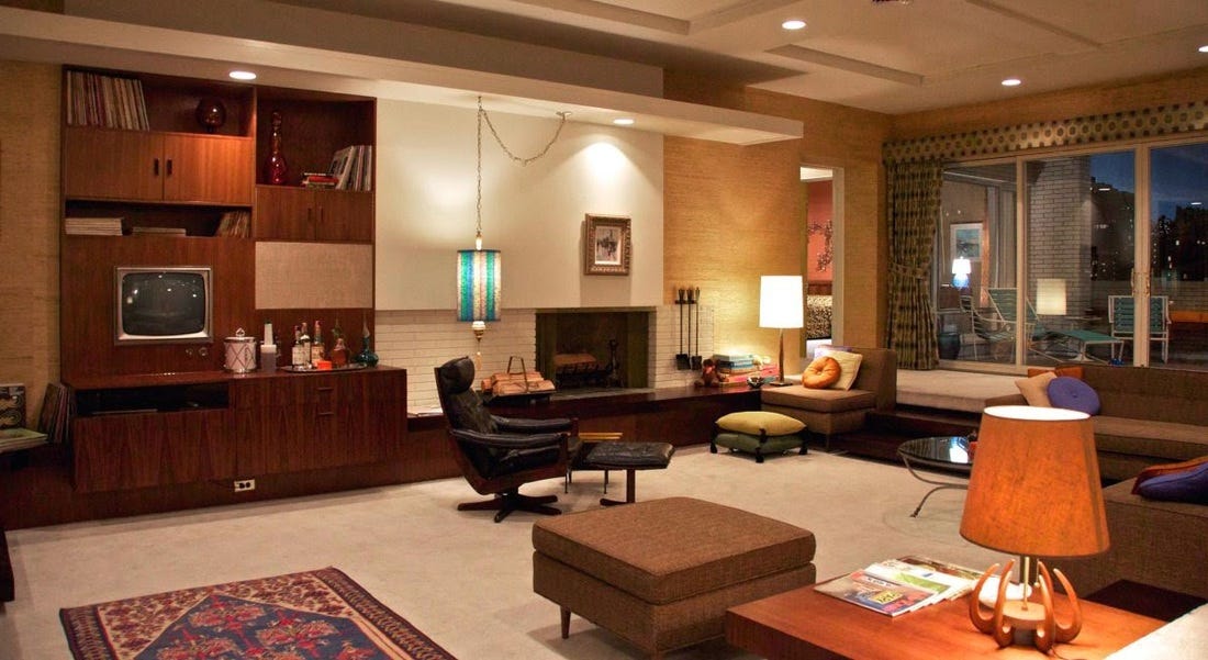 The fact that Claudette Didul, one of the designers in the Mad Men team has used the book “Decoration USA,” by Jose Wilson and Arthur Leaman when coming to design Don Draper’s bachelor pad in the 5th season of the blockbuster television series (above), is not surprising. The white carpeted living room, the colored kitchen, the masculine leather armchairs, all have come to represent urban interior of the year 1966, when the season opened. The book, along with others by the same authors, published in 1965, came to teach Americans the secret of glamorizing homes with the aid of bold colors in the manner of Pop art, flourishing in America in those years.