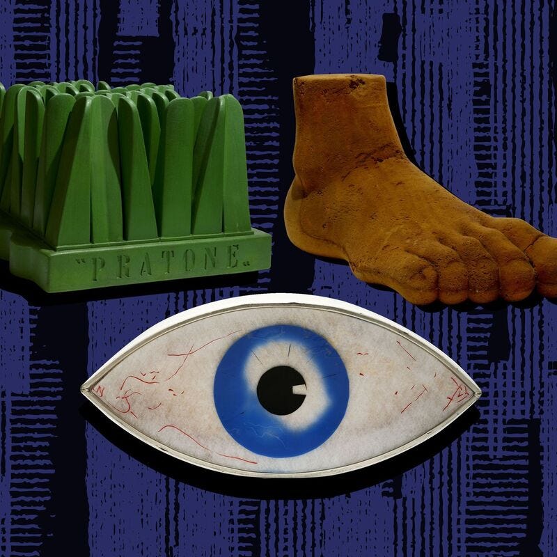 His encyclopedic collection of 180 objects tells the full story of the Radical Italian Movement, including such iconic and often examples, as The Goliathlike foot, Studio 65’s Up 7 Lounge, Alessandro Mendini’s Monumentino da Casa, Superstudio’s Prototype Cube, Ricardo Dalisi’s Wooden Throne, the Pratone by Giorgio Ceretti, Pietro Derossi and Riccardo Rosso. It is an opportunity to learn the essence of this historical design movement which has come to influence past and present and of which ideas are living today in much of the contemporary design of the 21st century. The exhibit captures the key radical concepts formulated by its founders: Gaetano Pesce, Joe Colombo, Ettore Sottsass, and the others. And like the design movement itself, the objects can be seen as beautiful pieces that stand out for their textures, colors, and innovative forms, or as objects that tell stories, the stories of that time.