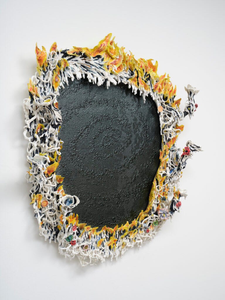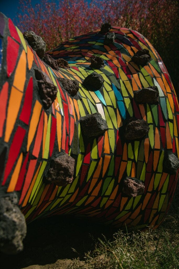 While guiding a private tour of the show this week, Ballesteros explained that the unusual title, Everything Here Is Volcanic, was coined by radical Swiss architect Hannes Meyer, who is famous for his role as the second director of the Bauhaus. Meyer later emigrated to the Soviet Union, but when his architecture fell out of favor in Stalinist Russia, he went to Mexico City where he lived during the 1940s. In a letter to his friend Hans Schmidt, he noted that “everything here [in Mexico City] is volcanic.” While Meyer was referring to the sociopolitical changes, political violence, unpredictable geological conditions, and the challenge of introducing modernism in Mexico, Ballesteros is addressing the explosive energy of contemporary Mexican culture. It is a complex story that consists of mystical, psychological, and contemporary elements that come together to capture the layers of Mexican art; between the folk and the tribal, between the traditional and the current.