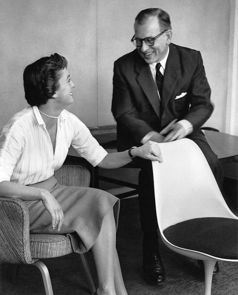 When Florence Knoll (1918-2019), the design legend who died today, went to study at Cranbrook in 1932, she didn’t know that this school would come shape her life story. It is here that she had met her lifelong friends and collaborators Eero Saarinen, Charles Eames, and Harry Bertoia, and it was at the Detroit design school that developed the eye, love, and understanding of modern design. When she met Hans Knoll, a German furniture manufacturer and married him in 1941, she began building what has become one of the most successful stories in American modern design, Knoll Inc. With Saarinen, she developed the Womb Chair and the Tulip Chair, with Bertoia the Diamond Chair, and with Knoll, obtained the license to produce Mies’ Barcelona Chair, turning the nearly forgotten piece of furniture into an enormous commercial success and a modernist icon. Her furniture embodied the mid-century modernist ideal: light, airy, flexible, and minimal, upholstered in plain fabrics, substituted the popular chintz. Knoll established Knoll Planning Unit, Knoll Textiles, revolutionizing office spaces across America, creating the ultimate prototypes: IBM, General Motors, and CBS. Florence Knoll was one of the giants who has come to shape American modernism and her impact and influence are still present.