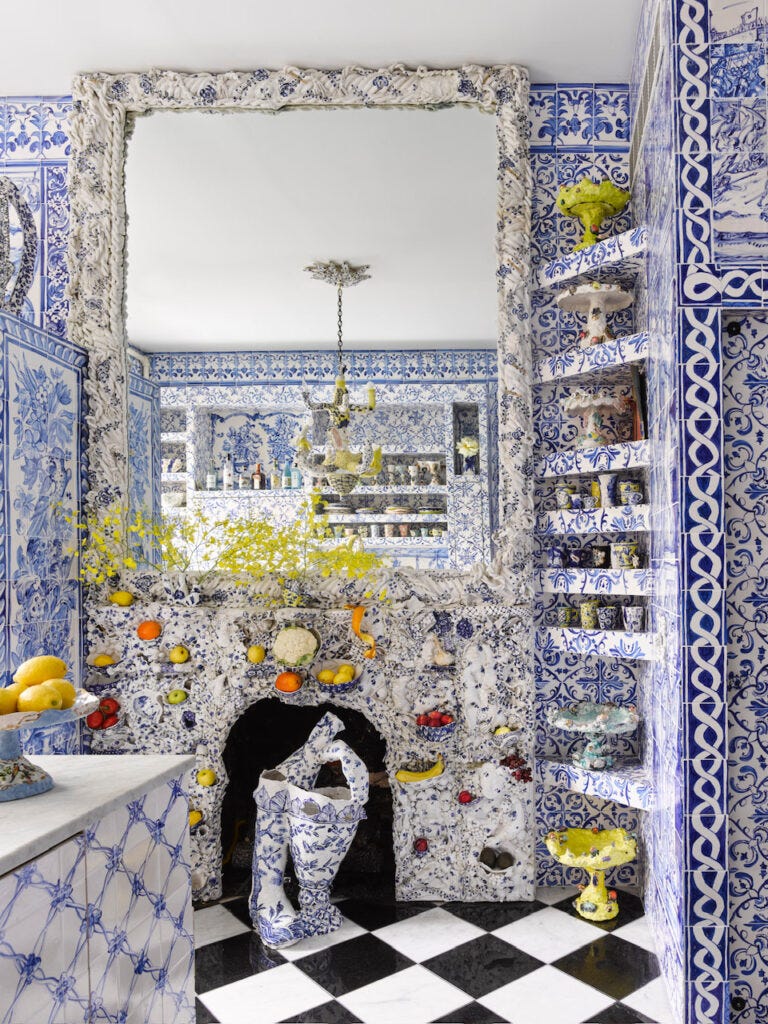 New York-based artist Francesca DiMattio has made it. In her studio she handcrafts furniture, lights, and mirrors in porcelain and plaster, reviving the Rococo mode with her own voice. In her hands, contemporary design is not only witty, artisanal, and creative in its interpretation of the Rococo’s spirit, but it also carries a spiritual depth connected to contemporary values and ideas— her personal innovation. I visited DiMattio at her home studio in Chelsea, New York, and got to taste her fantastic “gesamtkunstwerk” (total work of art) as she transformed a Manhattan brownstone into a world of fantasy.