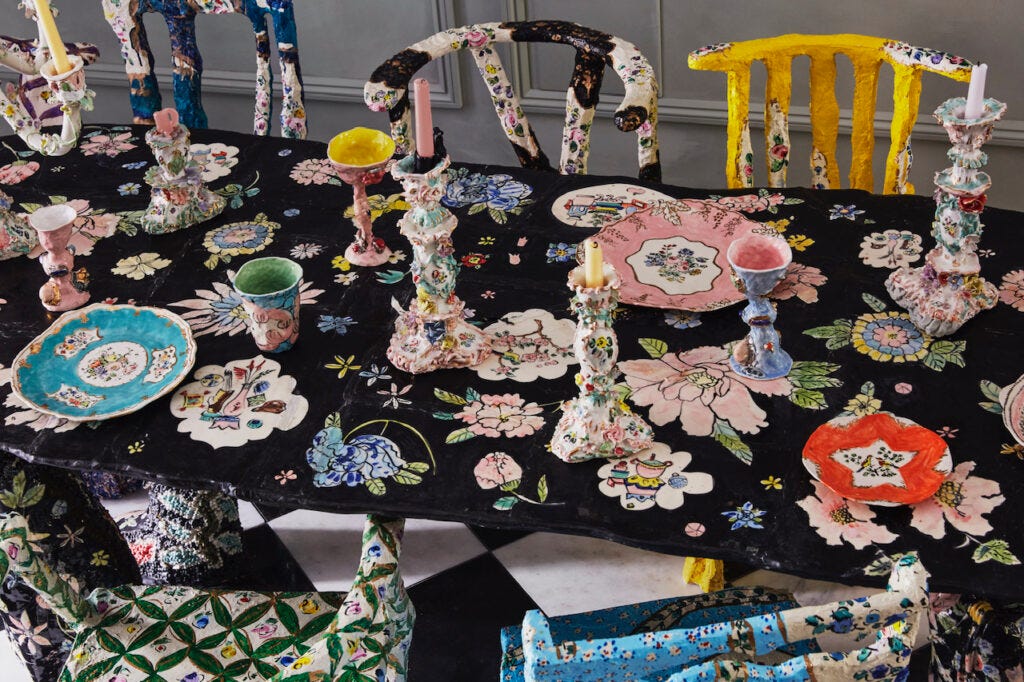 DiMattio dreams of fully decorating a historic European castle in her gesamtkunstwerk. Or, alternatively, to decorate a restaurant where the diner can fully experience and taste her world in its full drama—furnished with pieces that empower spaces and enrich interiors.