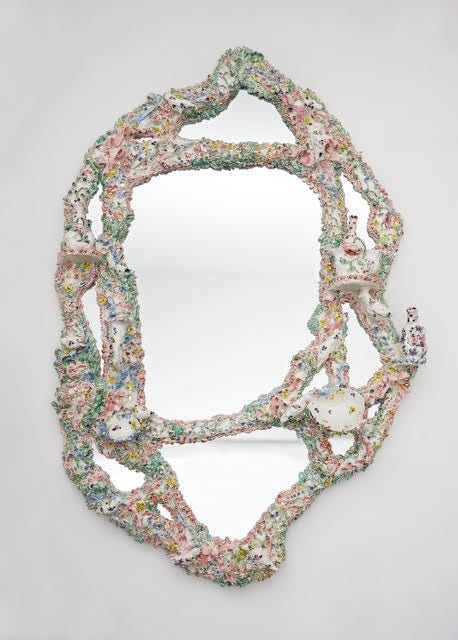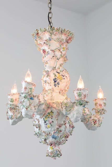 It is at the heart of the rich world of Rococo porcelain that DiMattio found her source of inspiration for new creative ideas. It is form which she has adopted the language; the sensuous, curvy delicate ornaments, biomorphic and irregular forms, and the soft, pastel Rococo color palette. Considering the fascinating story of early European porcelain which was typically created in German Meissen, French Sèvres, and English Worcester, DiMattio has created an entirely new world. While she consistently uses the patterns, colors, silhouettes, and often the materiality of the 18th-century ceramic world, her pieces are not only entirely contemporary, but also carry narratives inserted in their historical context.