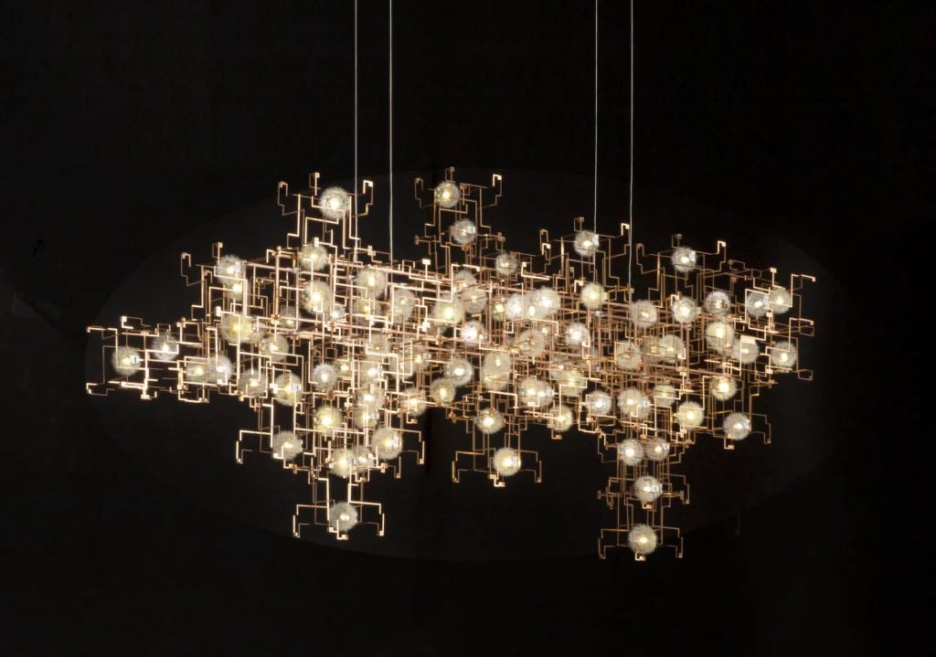 In its first iteration, Fragile Future featured a single “light emitting dandelion” attached directly to its power source, a 9-volt battery. The concept has since grown exponentially, thanks to Carpenters Workshop Gallery’s founders Julien Lombrail and Loic Le Gaillard, who recognized that the sensational yet simple form could be infinitely multiplied when coupled with three-dimensional bronze electrical circuits. Fragile Future has become DRIFT’s most commercially successful design, available across a range of scales, customizable to suit diverse functions and architectural settings.