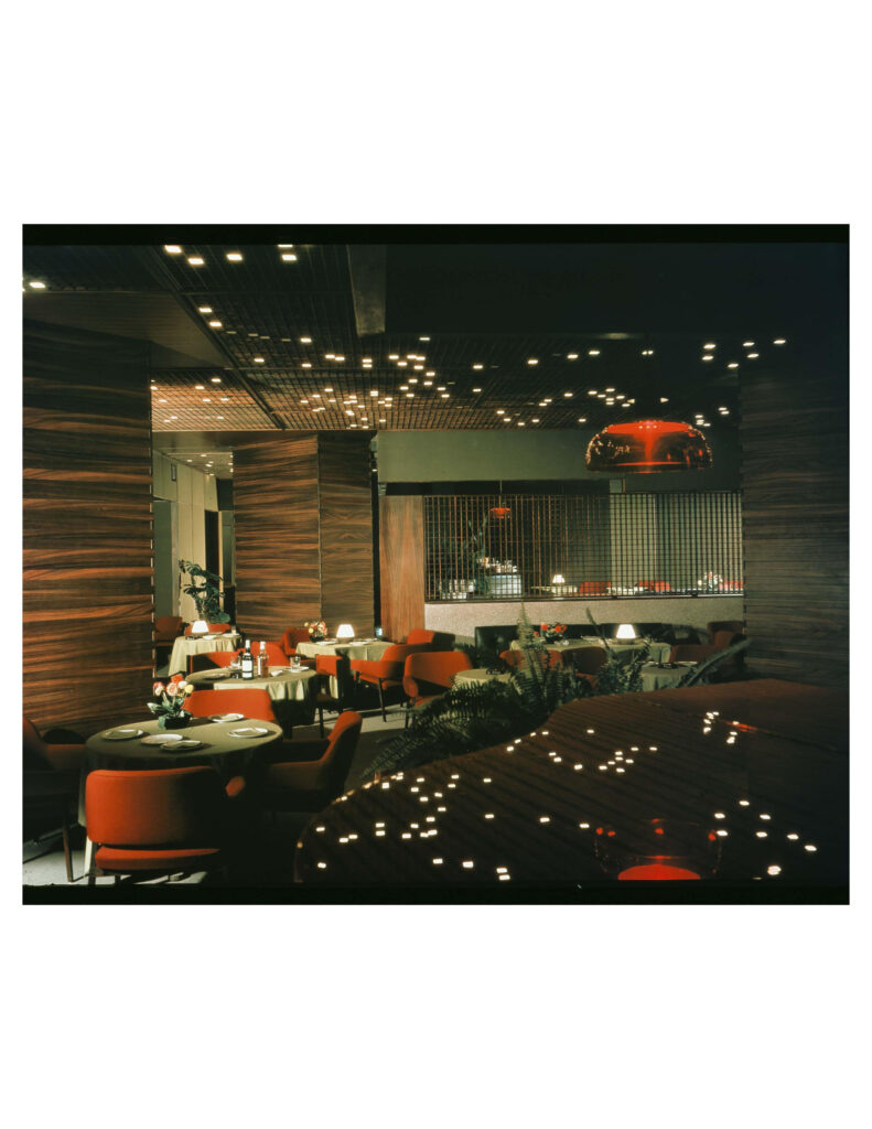 Much of Frattini’s career focused on interiors for the upper-middle class. From the time he founded his office in 1954, he became one of Milan’s most sought-after interior designers. His interiors captured the evolution of his career and the zeitgeist itself, moving from white spaces of the ’50s to textured and layered interiors during the ’60s, a sleek look in the ’70s, and the high-tech look of the ’80s, which culminated in his famed interiors for Hilton Tokyo of 1984, for which he designed the sleek, monochromatic public spaces.