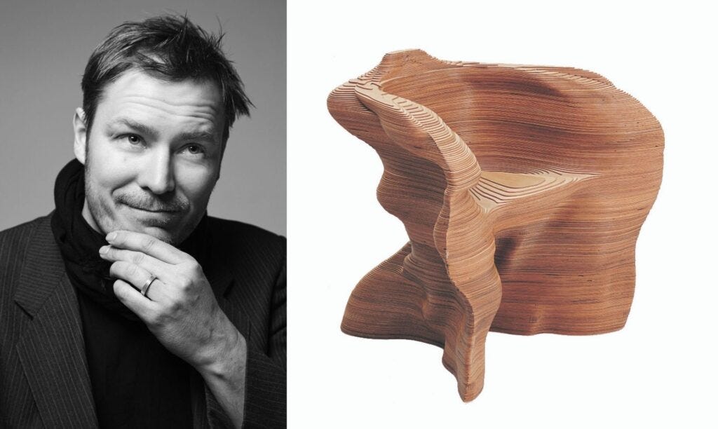Mathias Bengtsson and his Slice Chair, designed in 1999. Photos © Bengtsson Studio.