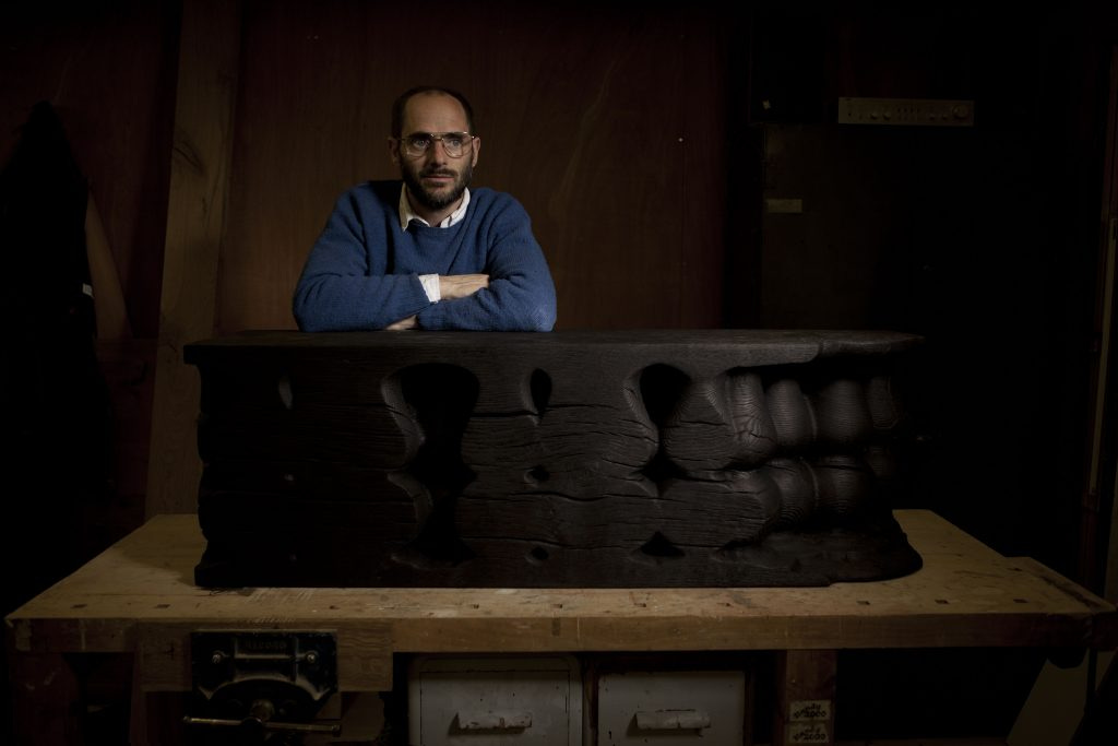Since I was introduced to the work of London-based designer Gareth Neal in the MAD’s exquisite exhibition Against the Grain, he has emerged as one of the intriguing voices in the landscape of contemporary design. Neal’s objects and furniture bring together advanced technology with dazzling beauty, and it seems that all design scholars agree that his work is an important expression of 21st-century design. Today, I have visited Neal’s studio in London East End together with his dealer Sarah Myerscough, who exhibits his magical objects in the world’s most important design fairs. I found that his work encompasses so many contradictions that it stimulates you to think: past and future; ornamentation and minimalism; digital craftsmanship and handcraftsmanship; classic and expressive. One of his legs is always in the past while the other in the future. Neal is not only conversant with the history of design, but he is set to challenge traditional forms, revisit and interpret them through the aid of digital technology. Assisted by a handful professionals specializing in the various areas of digital fabrications, he pushes boundaries, and merge the most advanced digital skills with historical methods. His chest ‘George III,’ for example, now in the permanent collection of the V & A, is based on the traditional form of Georgian furniture, with a digital twist (above), and therefore it brings nostalgia with cutting edge appearance. From the series of sculptures which he created in collaboration with Zaha Hadid, all inspired by ancient vessels, he still produces one by one, and showed me the slow and time consuming process that it takes the CNC machine to achieve the perfection (below). Neal lives in two different worlds that through his passion and genuine skills was able to merge, in the world of traditional cabinetmaking, which is where he received his training and in the world of digital technology. I love to quote how V&A curator Christopher Wilk defined Gareth Neal: “There are furniture makers who are great craftsmen, and there are those who are great designers. Gareth Neal is a rare find. He’s both.” Thanks you, Gareth for hosting me in your studio and for sharing your work. All images courtesy Gareth Neal.