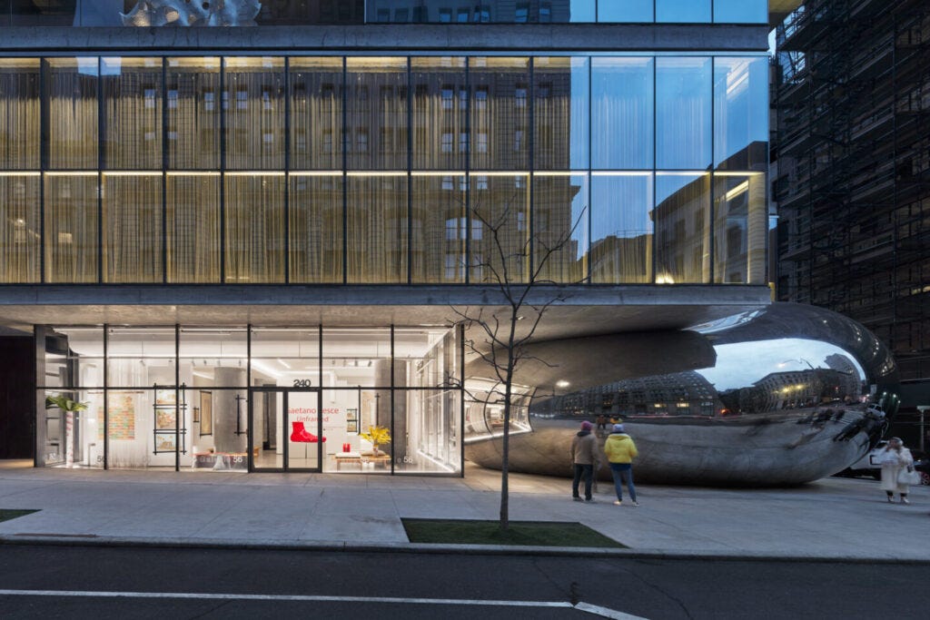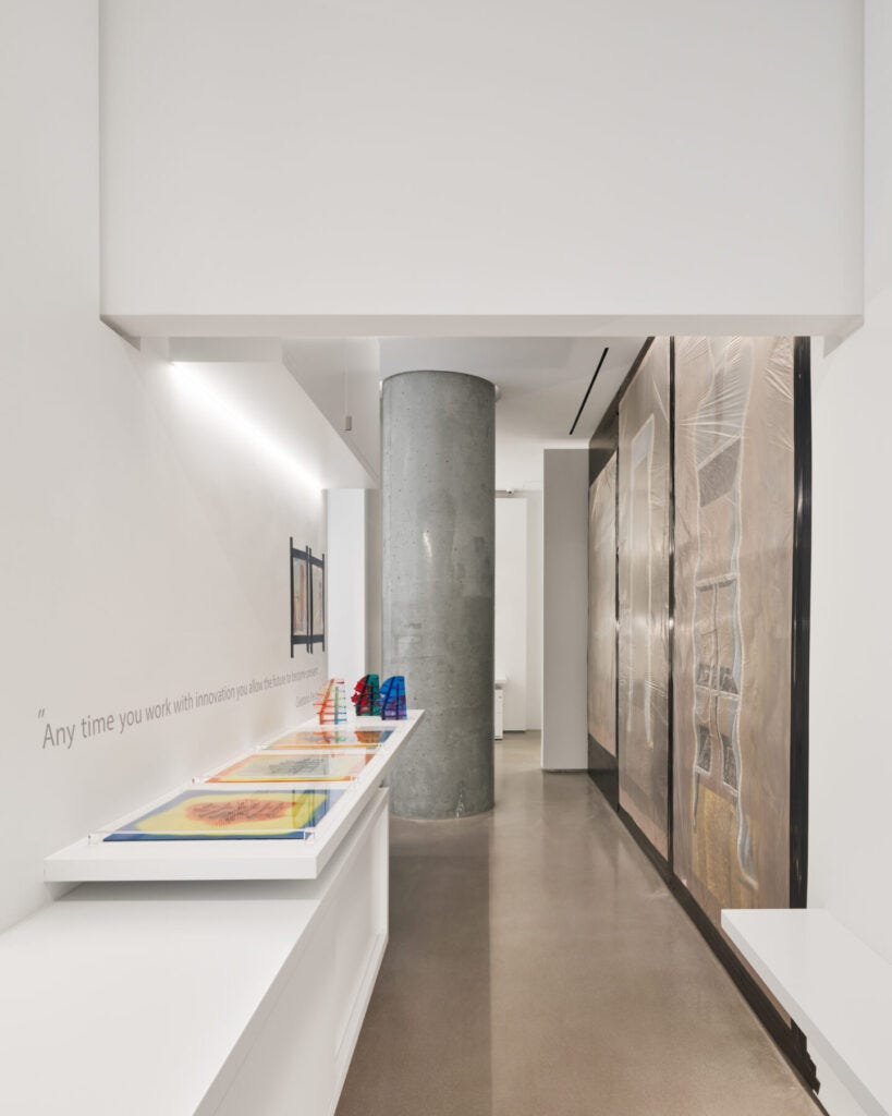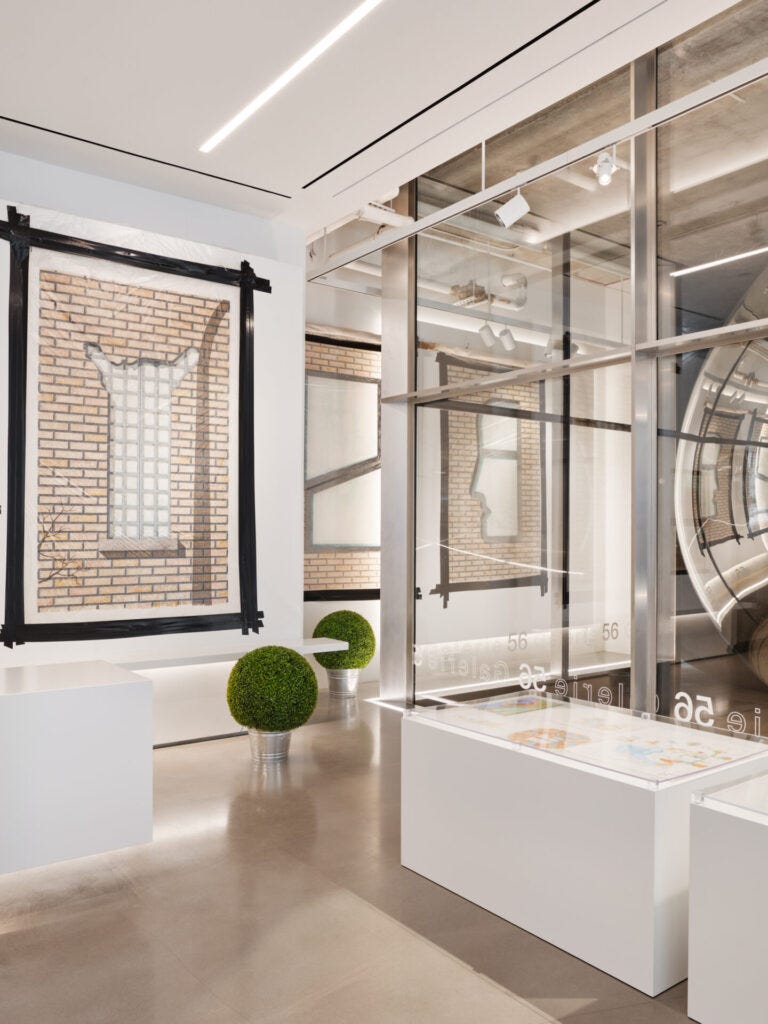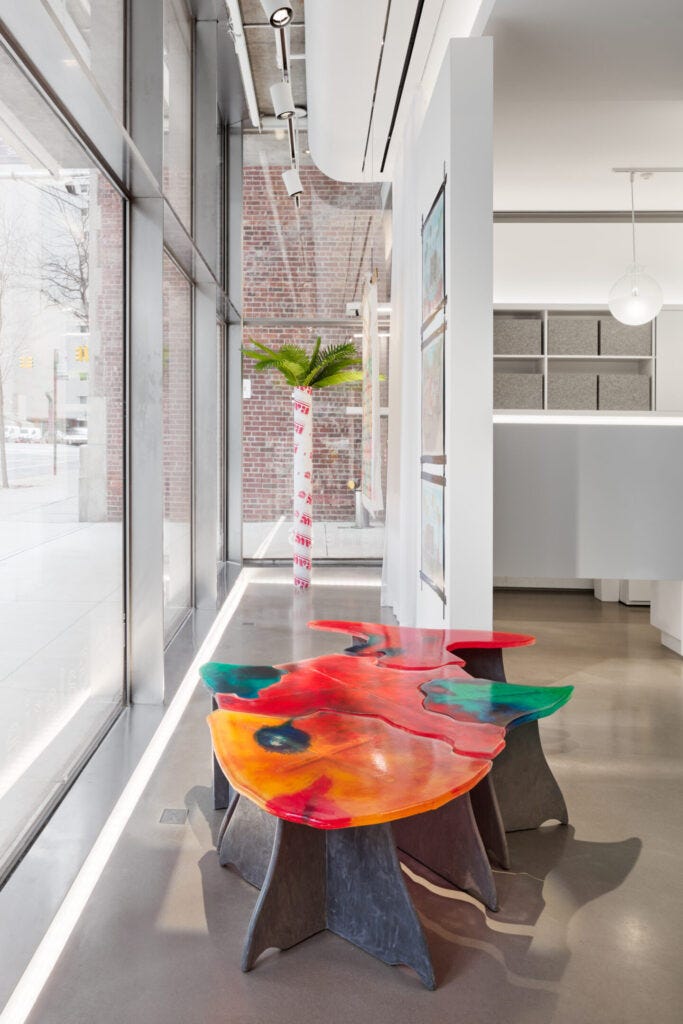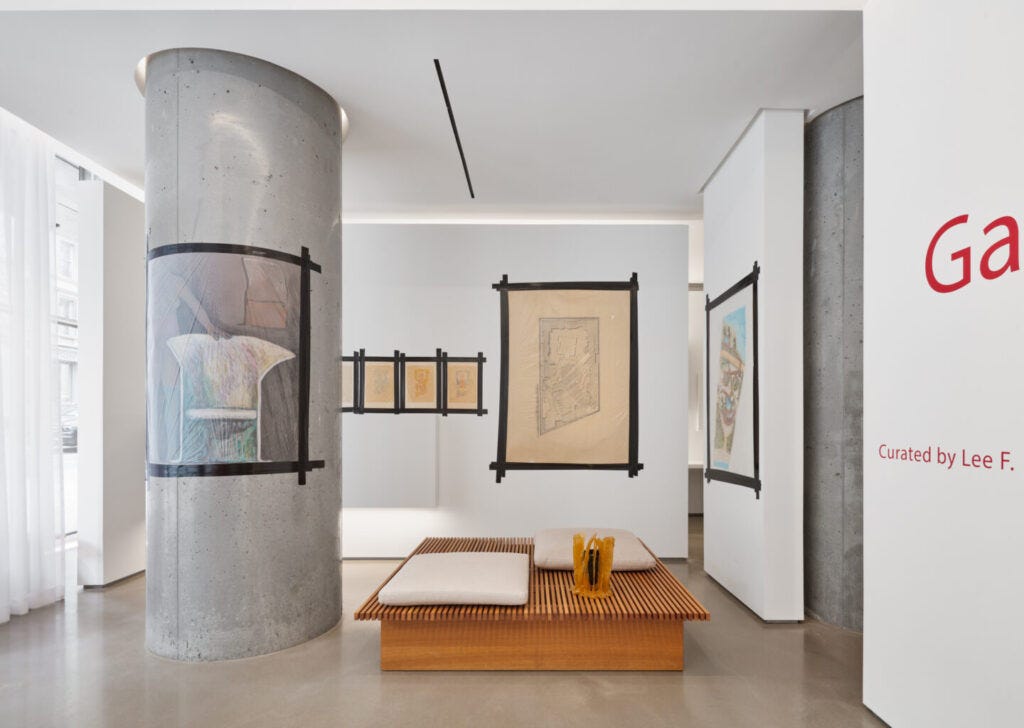 One of the most intriguing and exciting design events of 2022 was the opening of Lee F. Mindel’s Galerie56 in TriBeCa. Mindel is an architect, curator, writer, and tastemaker who has created streamlined interiors and elegant architecture for decades with the SheltonMindel team, which have been consistently celebrated. There are few who understand design like Mindel, and his engagement with the galleries and auctions as well as the expertise he has developed in the world of objects has lent him the nickname of the ‘Eye.’ The new gallery— situated on the ground level of the Jenga Tower by Herzog & de Meuron—is Mindel’s art playground where he has the opportunity to fully express his vision by curating special exhibitions, developing new ways for objects to be interpreted and lived with. He goes his own way, always striving for perfection and always looking to unearth new ideas in historical and contemporary materials. Mindel’s current show, Gaetano Pesce Unframed, is the first to focus on the drawings by the multidisciplinary New York-based Italian architect, and it is a testimony to his signature style.