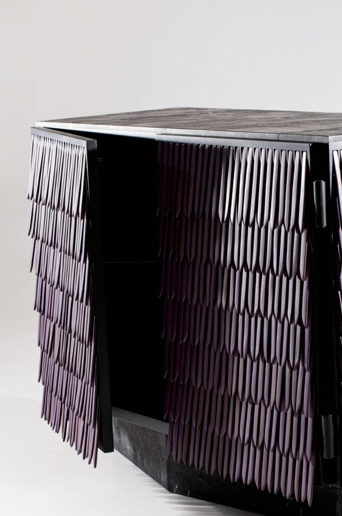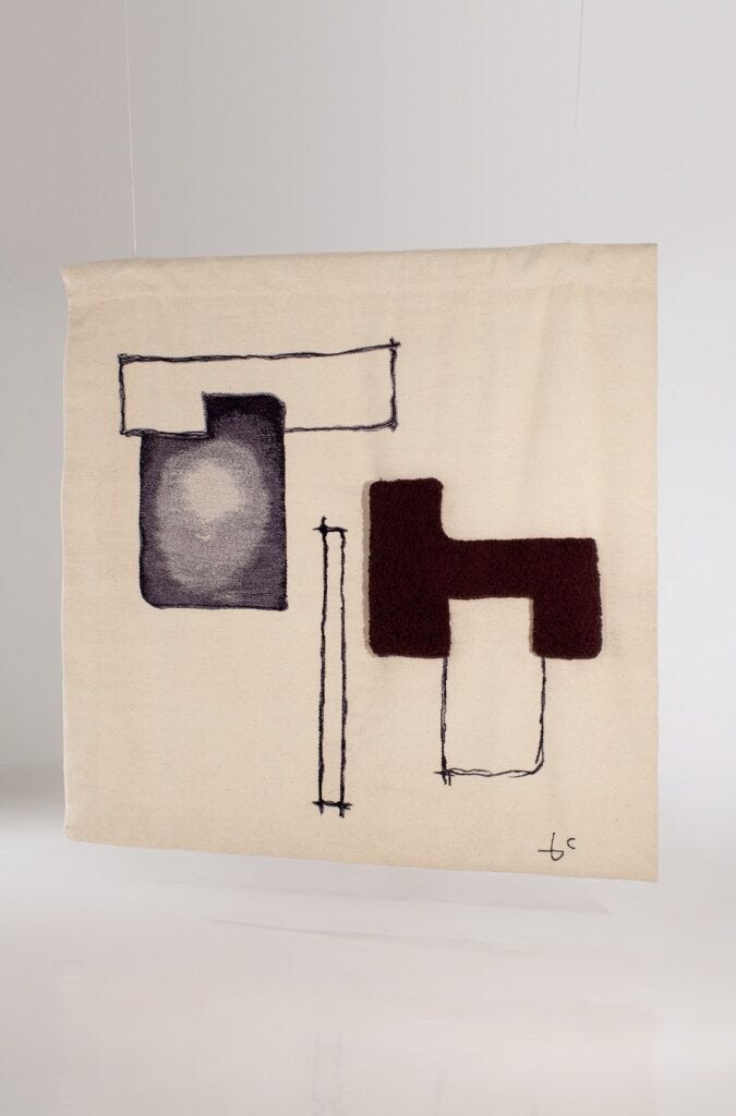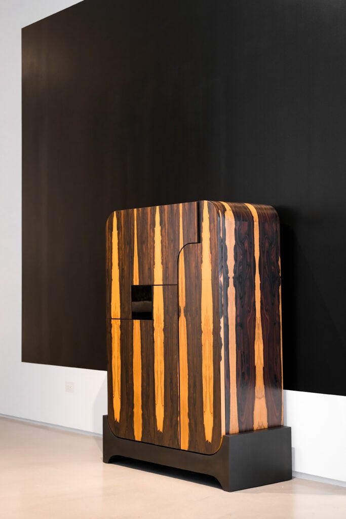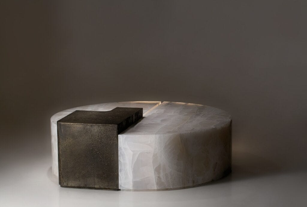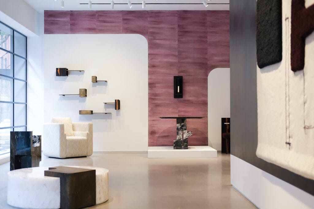 Her work brings you close to the material, allowing you to communicate and connect with the material emotionally while also having the power to transform the contemporary space. The two pieces that will stick with me most are the tapestry based on a sketch and hand-woven in a variety of methods, and the Origin Coffee Table with its exquisite white onyx and brass (above). The exhibition will be up through the end of January at Cristina Grajales Gallery.