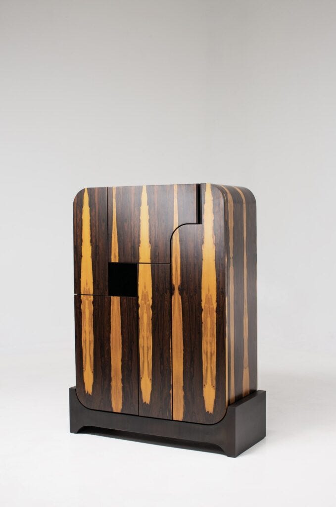 All pieces presented in the show have been brought to life by craftspeople in Mexico and appear both feminine and powerful simultaneously. They combine the two worlds of Cortina’s life as a professional designer; one being the expression of a strong Mexican identity, and the other being references to the oeuvre of female modernists of the 20th century—particularly Eileen Gray and Charlotte Perriand. Cortina manages to combine these two worlds into one. You can clearly identify other influences from her world such as ancient cultures, modern avant-garde, the heritage of Mexican modernism, and the roots of handcraftsmanship. This conversation between the past and present enriches and brings layers to Cortina’s work, making it feel sophisticated and interesting to live with—which is what I like to see in contemporary design.