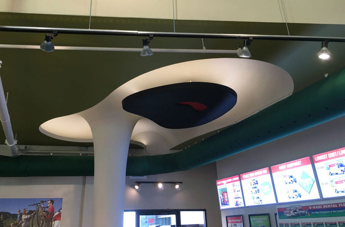 This shall be crowned as the most bizarre, unbelievable story of the week. The image of the sculpted ceiling that Isamu Noguchi created for the lobby of the American Stove Company-Magic Chef building in St. Louis has been reproduced over and over in design books and has been known as a ‘lost’ artistic treasure for decades (below). The building’s architect Harris Armstrong commissioned the ceiling from Noguchi upon the completion of the construction in 1946, and the sculptor created what has since become an iconic work in his design oeuvre. IN fact, during these years, Noguchi was particularly involved in design, creating series of furniture for Michigan furniture maker Herman Miller. When the lobby, serving today as the showroom of the moving and storage company U-Haul has undergone renovation, the remarkable sculpted ceiling was discovered hidden under the existing ceiling, which has been lowered sometimes in the 60s. U-Haul plans to repair and to paint the ceiling according to its original look and colors, bringing it back to its past glory. I have shown the striking ceiling in my lectures for years, referring to it a representation of the biomorphic language which Noguchi had developed during the 40s, and which he had carried to his work in design.