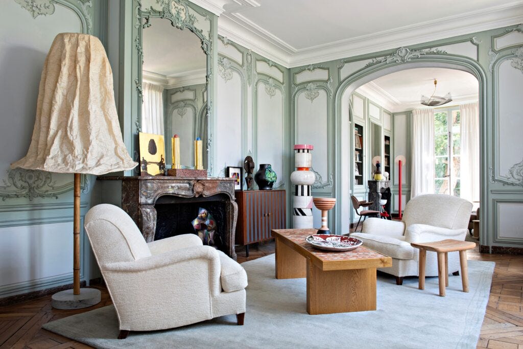 When it comes to living in Paris, Zana has strong preferences. He favors the vibrant lifestyle of the Left Bank, starting his day at the famed coffeehouse Café de Flore before heading to his office in the gallery district of Rue de Seine. He prefers the 17th- and 18th-century Neoclassical Parisian houses of Le Marais and the 6th arrondissement over the heavily decorated 19th-century Beaux-Arts Haussmann apartments. His 18th-century home on Rue de Grenelle, filled with his design collection, is the ultimate representation of his artistic vision and his penchant for evocative patinas.
