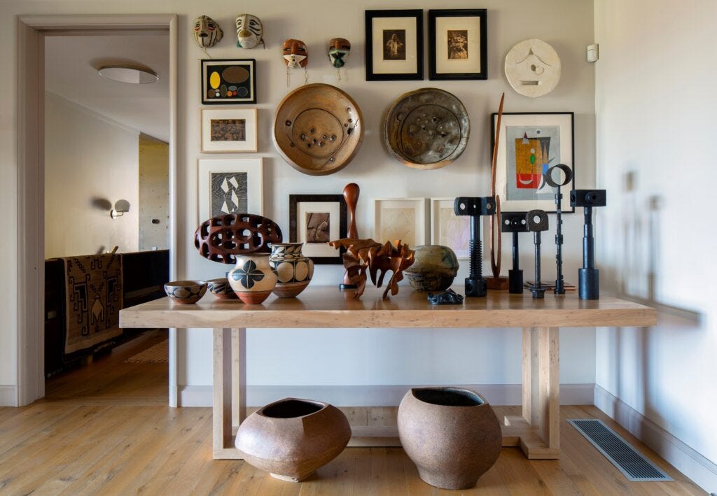 Wanzenberg’s love for American Arts and Crafts furniture is legendary. He rediscovered the masterful works of turn-of-the-20th-century designers like Gustav Stickley, Frank Lloyd Wright, and Greene and Greene long before they came back in vogue, and the aesthetic became an abiding influence over much of his oeuvre. In the 1980s and early ’90s, he and Johnson drew wide acclaim as they pioneered collecting and using American Arts and Crafts furniture in their interiors, sparking a huge trend. The look they originated—architectural, rectilinear, dark, and oaken—was quickly adopted in homes of movie stars, such as Steven Spielberg’s house in the Pacific Palisades and Barbara Streisand’s apartment on Manhattan’s Upper West Side. Later on, Steve Jobs collected this material as well, far from the public eye.