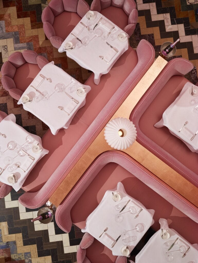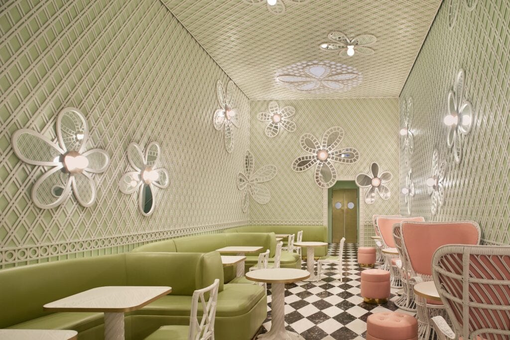 While she has created many stylish private residences furnished with blue-chip pieces for major tastemakers–Maja Hoffmann and Jean-Gabriel and Edward Mitterand, to name just two–Mahdavi loves to speak about her public spaces. She feels that hotels, restaurants, cafes, clubs, and shops are the touchstones of her oeuvre, best capturing her signature aesthetic, which she likes to call Pop Orientalism. In her view, a house is a portrait of the person living in it, but a public space allows the designer to wholly define the visual narrative.