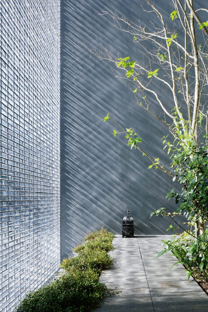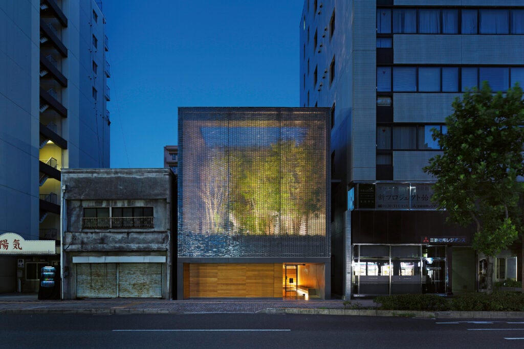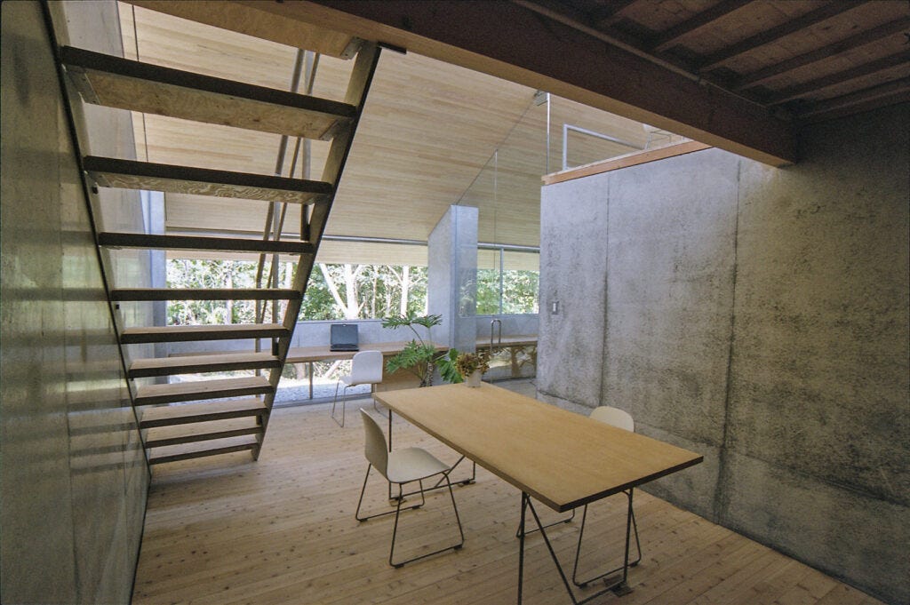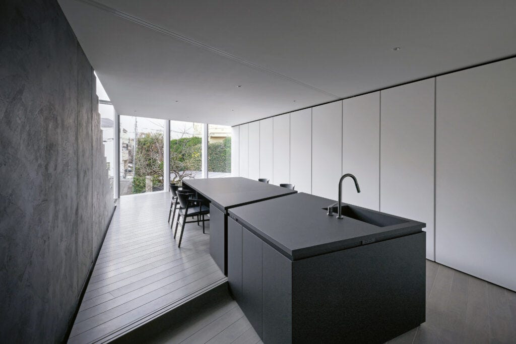 Another common aspect of Japanese life is the need for hybrid live-work spaces, particularly for those outside of city centers. House & Restaurant in Ube by Junya Ishigami offers a dynamic example. The client, an owner of a French restaurant in Yamaguchi, wanted to build a new restaurant that seemed like it had existed forever, where he could also live with his multigenerational family. The architect conceived of a plan to excavate the site so that the sprawling, rough-hewn structure could be underground, integrated into the landscape, with the public restaurant positioned on the north side, the private residence on the south side, and an open courtyard in between. Pollock noted that unlike most architecture, this project was built from the ground down rather than the ground up.