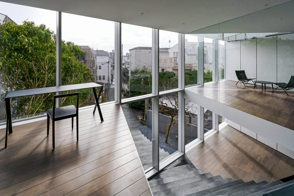 The exquisite houses of Tokyo, with their astonishing architectural solutions to extremely limited space, could fill an entire book by themselves. It’s clear that the current generation of Japanese architects have accepted tight urban conditions with ingenuity and aplomb. Garden & House, for instance, a slim, five-story townhouse in Tokyo designed by Ryue Nishizawa, nestles snugly between two buildings on a dense city block—and still this live-work hybrid is flooded with light and greenery. The building’s tiers of concrete slabs are enclosed in glass, which is setback from the facade to accommodate balconies of lush, camouflaging gardens on each floor. The result is an airy yet secluded urban sanctuary that seems to have no walls at all.