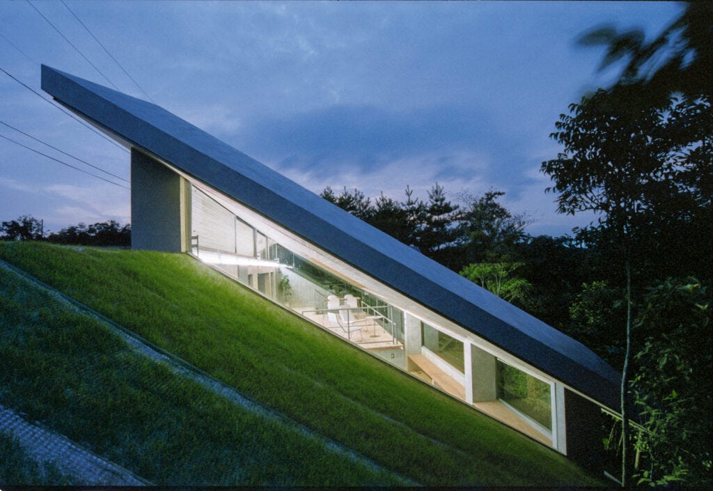 At the request of the client, a renowned ceramicist, the Sloping North House in Yamaguchi by Hiroshi Sambuichi is inspired by traditional noborigama “climbing” kilns, which have a slanted shape divided into chambers capable of firing hundreds of vessels at once. Like the kiln it’s modeled on, the Sloping North House features ventilation passages at the top and bottom to facilitate the flow of cooling breezes from the forested valley below. What a stunning adaptation of ancient heritage to modern living!