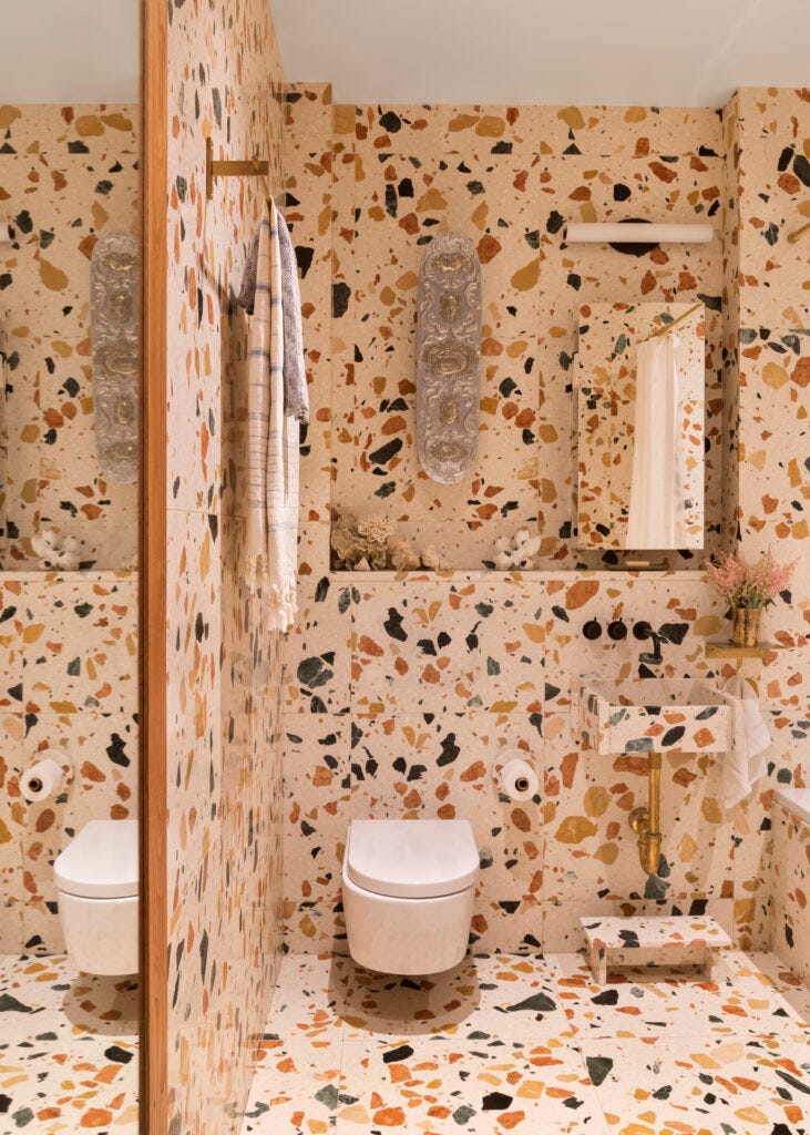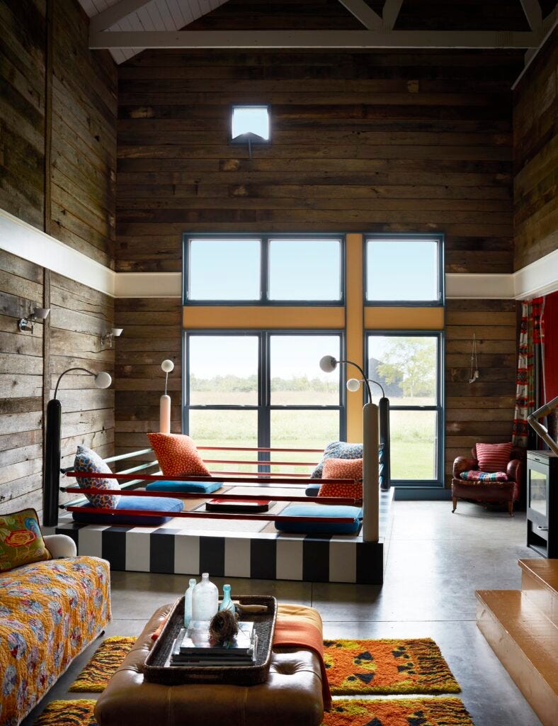 They dislike empty spaces and prefer instead those cozy, playful, colorful, and joyful environments that exude comfort. Their love for fabrics addresses this and matches their passion for objects. They use textiles to introduce patterns and textures, and to achieve spatial sensuality. Often, they say, it is the fabric that determines the direction of the interior scheme, while they particularly love handmade textiles and often use old textiles they find in small shops across the world as the point of departure for new patterns and languages. Incorporating vintage fabrics from Liberty and Japan, old Italian linens, vintage American quilts, and combining them into colorful, layered symphonies, imbue a sense of nostalgia and emotionality, while defining their signature in the world of interior.
