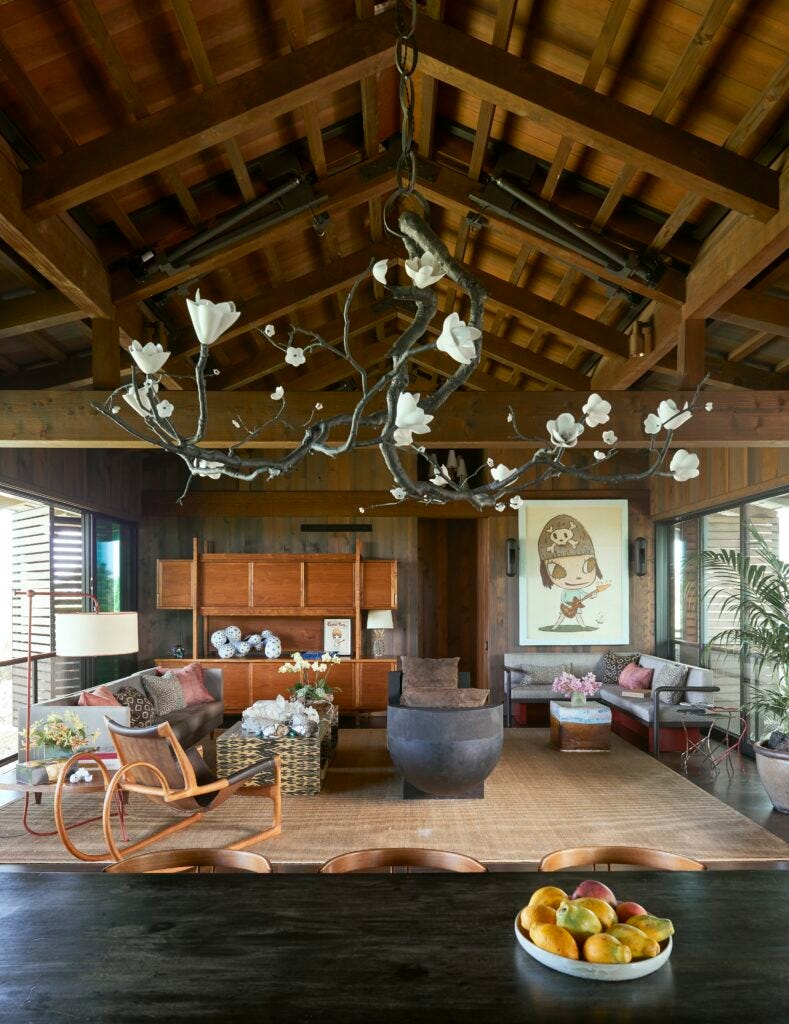 In out talk, we looked at two houses for which they created the interiors—in Hawaii and in Long Island, New York—by Seattle-based architect Tom Kundig of the firm Olson Kundig Architects. The award-winning architect has made his name with private residences that have proven to be both rewarding and inspiring, and from which they learned about devising spaces for family life. They started acquiring furniture long before the house was completed. This holistic approach was particularly appreciated by the clients in both houses, who have a special affinity for collectible design. Witnessing the evolution of both the building and the furniture was a unique way of working, as they created symphonies of objects, which included modernist masterpieces along with studio furniture and contemporary design.