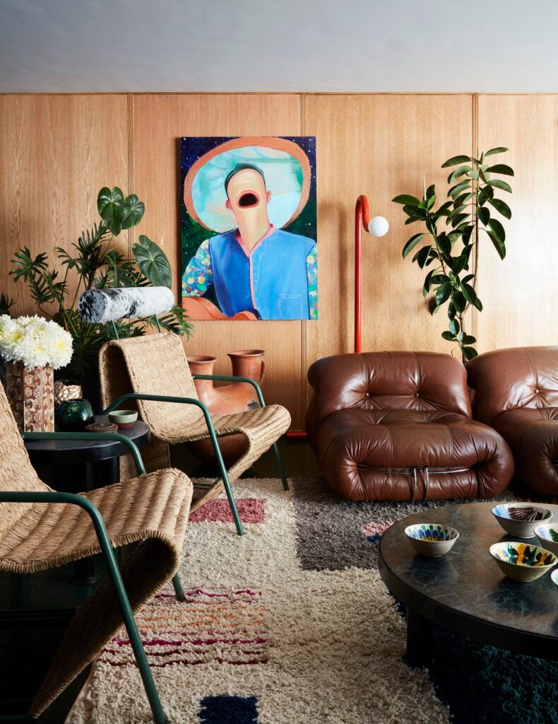 They demonstrate a preference for objects with decorative qualities, such as the unusual, colorful, textured, somewhat quirky, and always handmade, because they believe that these types of objects add layers to interiors, such as the furniture by South African husband-and-wife makers Dokter and Misses, whose limited-edition pieces are layered with political, historical, and cultural narratives. They have forged close relationships with makers, designers, and craftspeople from across the globe. Some of them, such as David Wiseman, Francesca DiMattio, and Mono Rojo, received entire chapters in the book, devoted to their studios. Those artists, they say, feel similar to them regarding the role of objects in interior spaces, and following their evolution in the art world has given them great pleasure as they draw them into their own story.