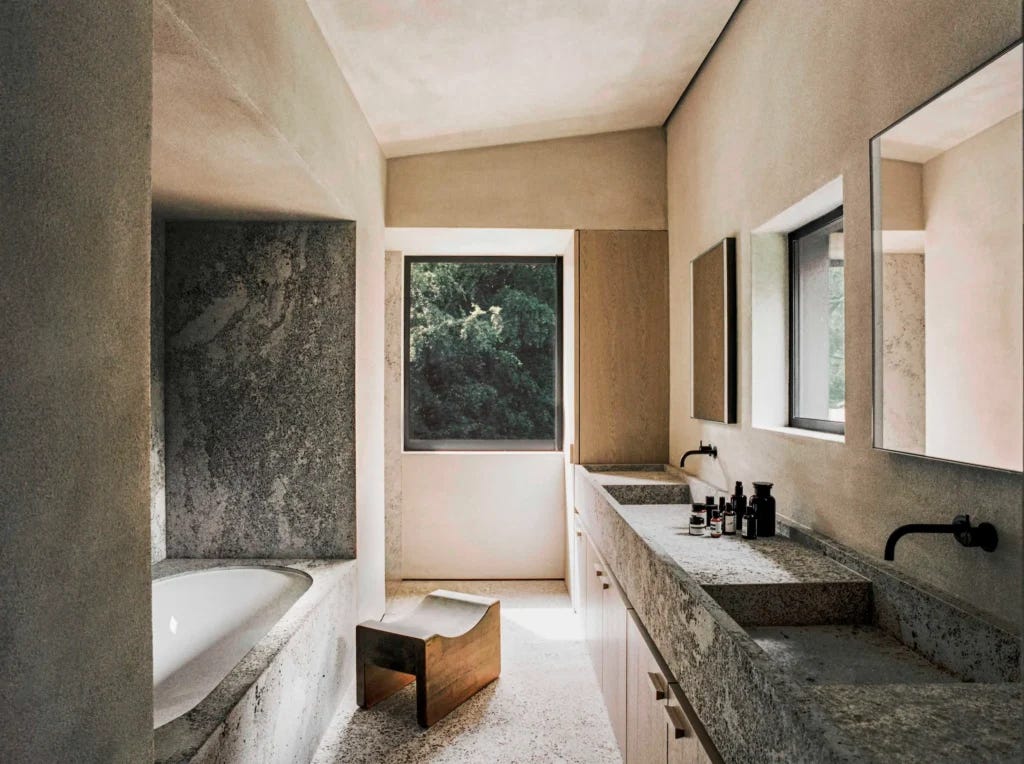 My conversation with Schuybroek covered one of his earliest projects, the S House in Cap d’Antibes in the South of France, completed in 2012. This hidden single-story holiday house— which he started before launching his eponymous office—turned out to be the prototype of his oeuvre going forward. It is where he first established his holistic program by integrating the design with the surrounding Mediterranean landscape. It is also where he used the materials that have become his hallmark, including concrete, limestone, and reclaimed wood, and where he first developed a furniture plan to accentuate the soul of the house.