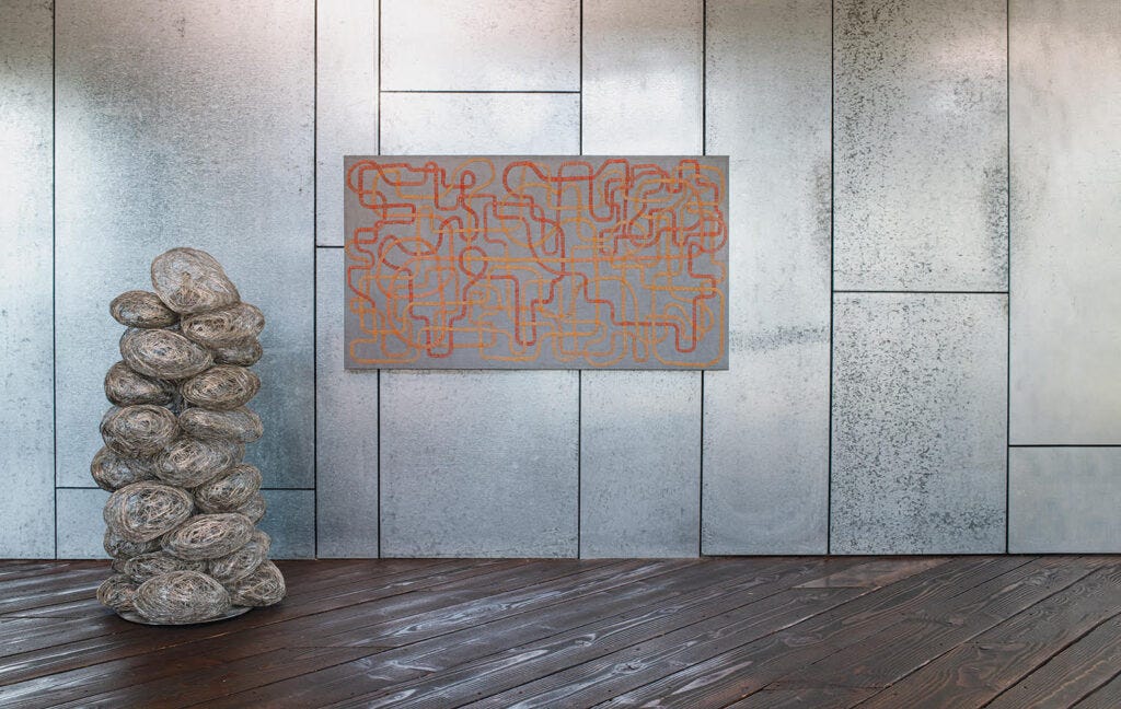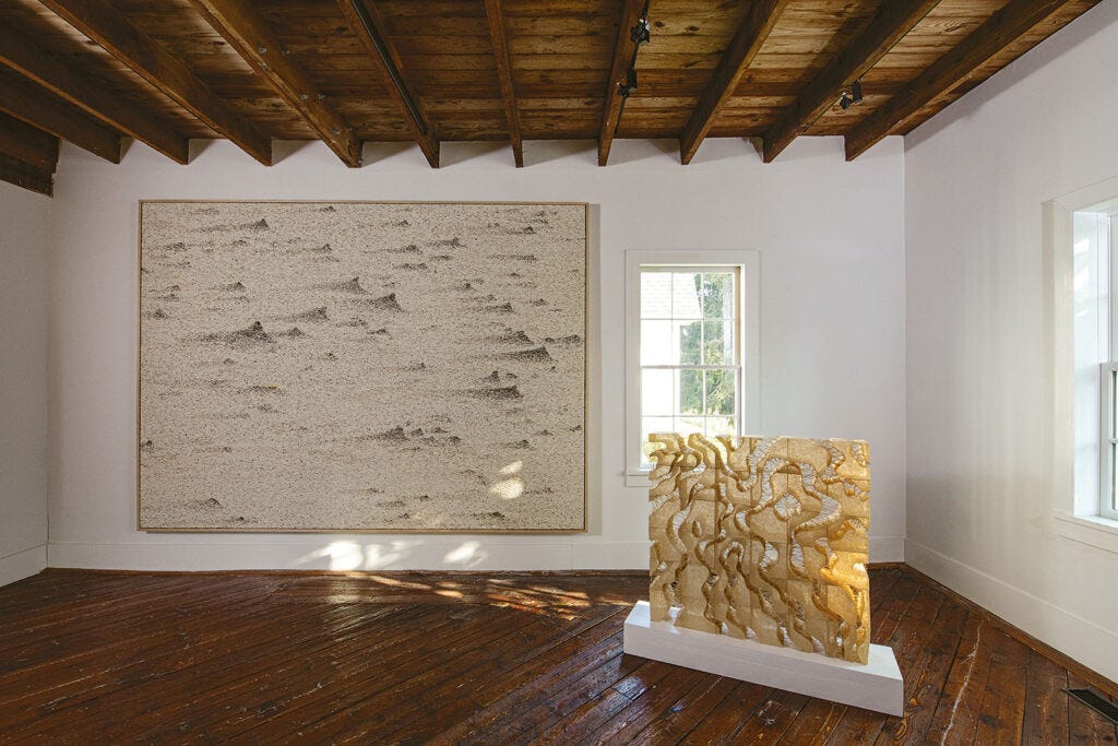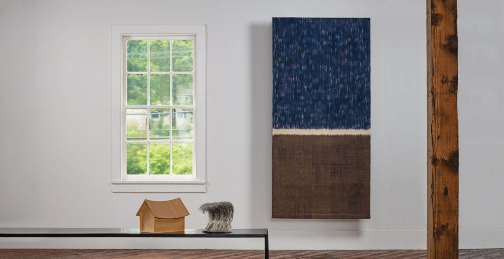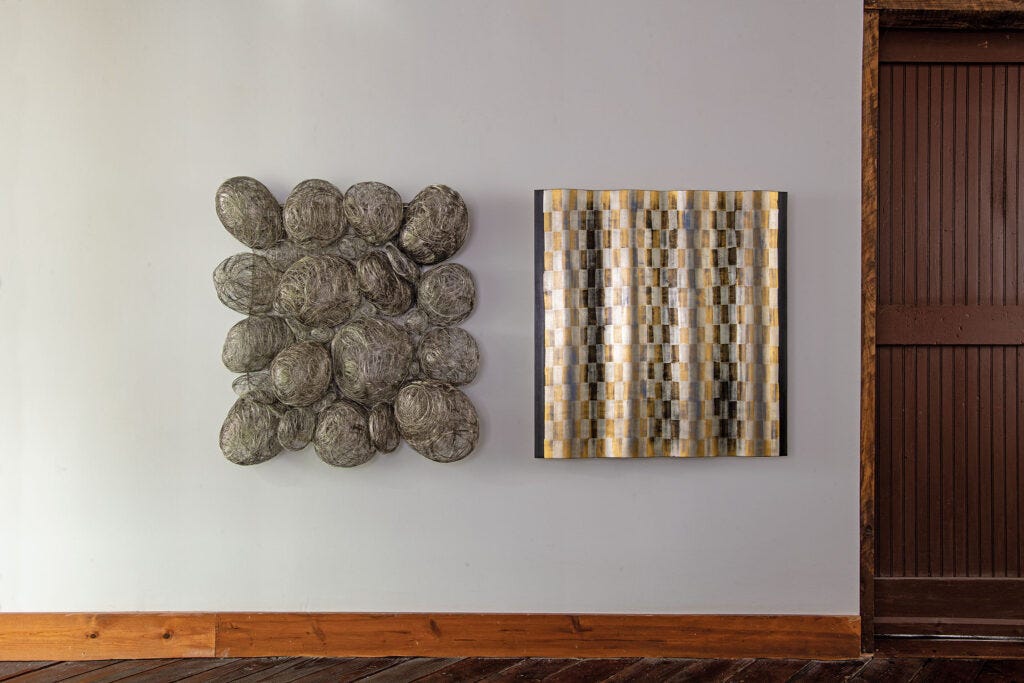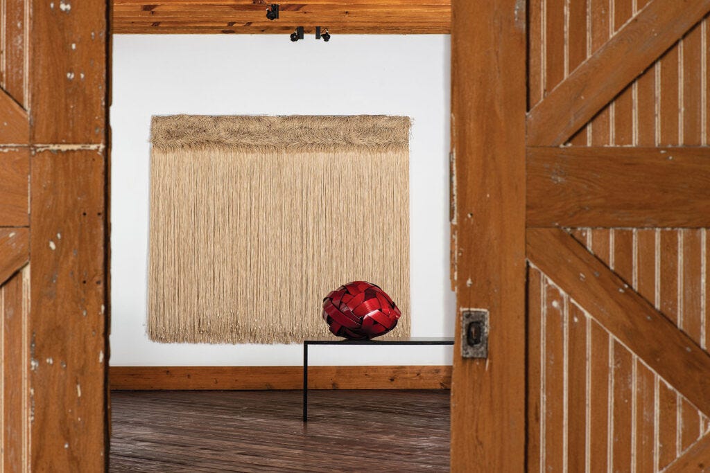 I visited the gallery for the first time last week. The gallery has been dedicated to contemporary fiber art since its foundation in the 1980s, and is situated in an expanded historic farm house, which is also the home of its founders, Rhonda Brown and Tom Grotta. It is certainly a special place—one of a kind—where you can see works of decorative arts installed in a domestic context. The home, a former barn, was built in the late 19th century and was expanded to include 3,500 square feet of combined living-gallery space, surrounded by the most beautiful raw New England landscape. In this magical place, a passionate husband-wife team have been holding exhibitions dedicated to fiber art, and have provided the only such platform dedicated to the field, in paper, wood, linen, steel, baskets, bamboo, woven wood. The field of fiber art, I have learned during my visit, has gone far beyond woven textiles.